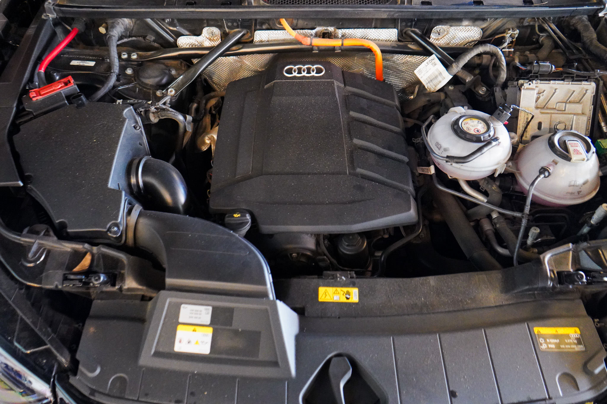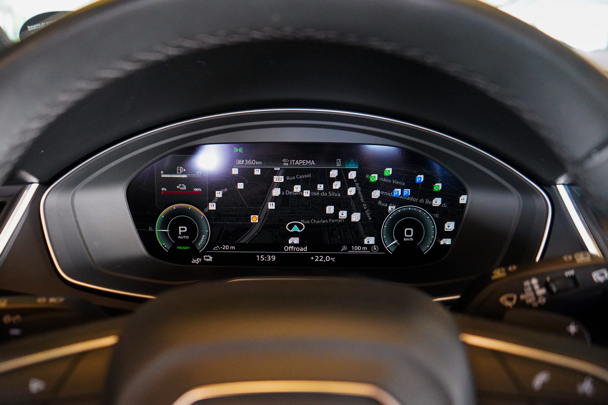 O conjunto motriz combina um motor 2.0 TFSI turbo de quatro cilindros, com injeção direta e indireta, capaz de gerar 252 cv e 37,7 kgfm, a um motor elétrico de 143 cv e 35,7 kgfm. O sistema entrega potência combinada de 367 cv e torque combinado de 51 kgfm, proporcionando acelerações vigorosas e respostas imediatas. A autonomia no modo elétrico é de 30 km, com velocidade máxima em modo elétrico de 135 km/h, reforçando sua proposta eficiente para uso urbano.