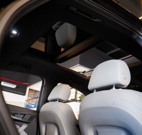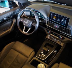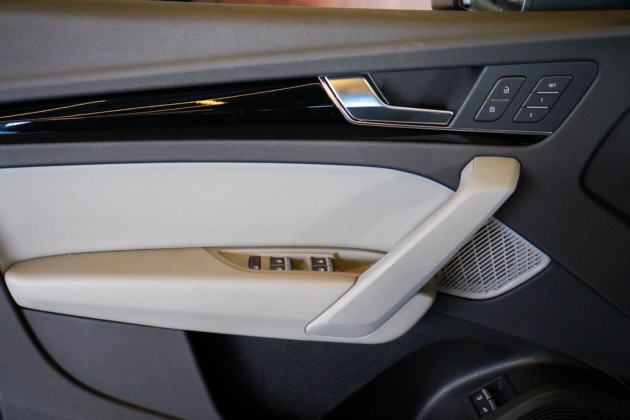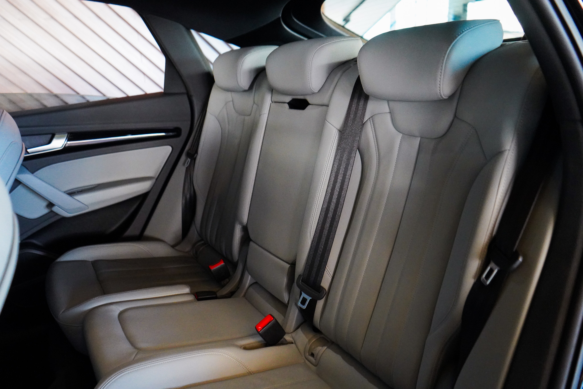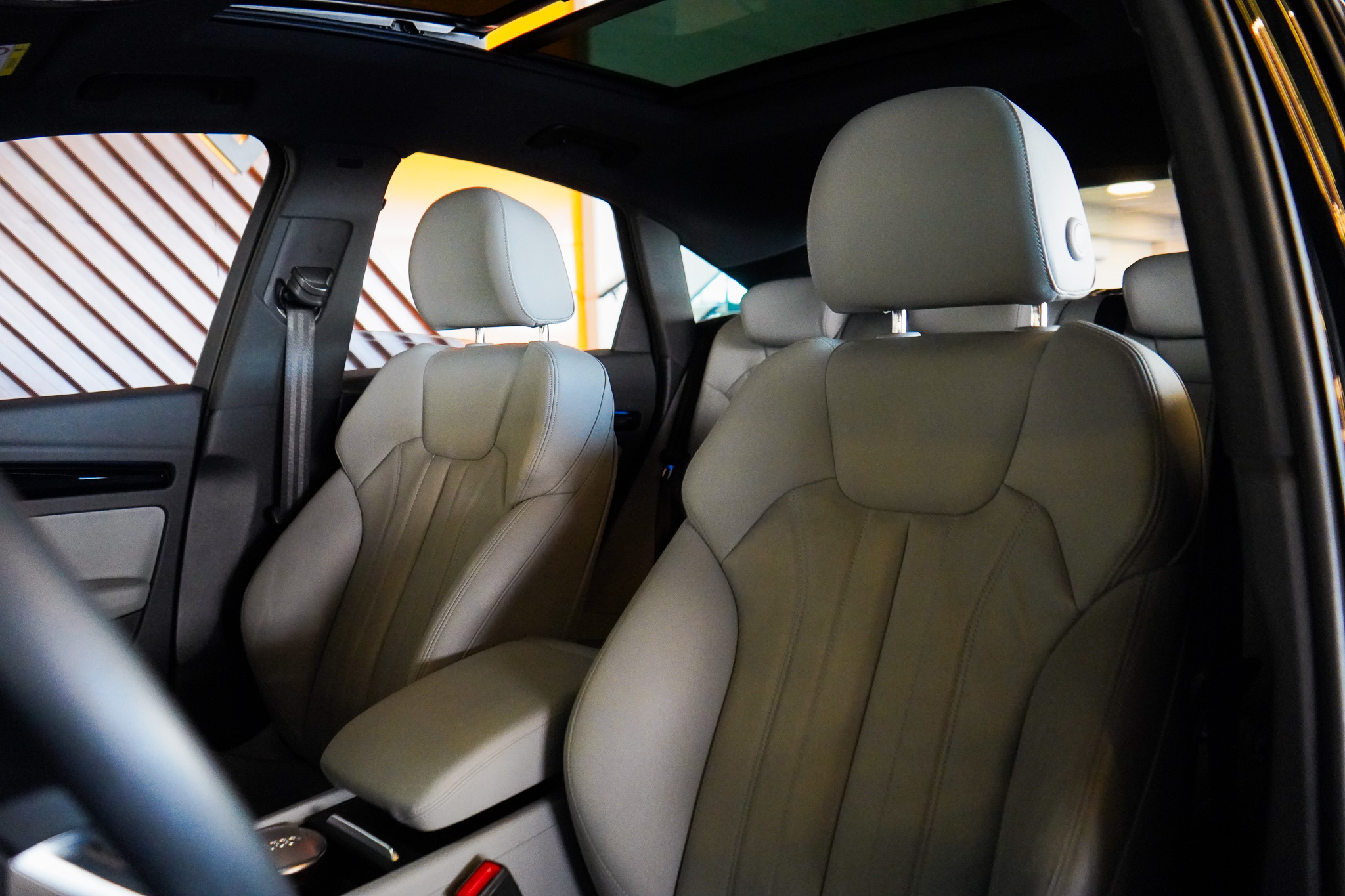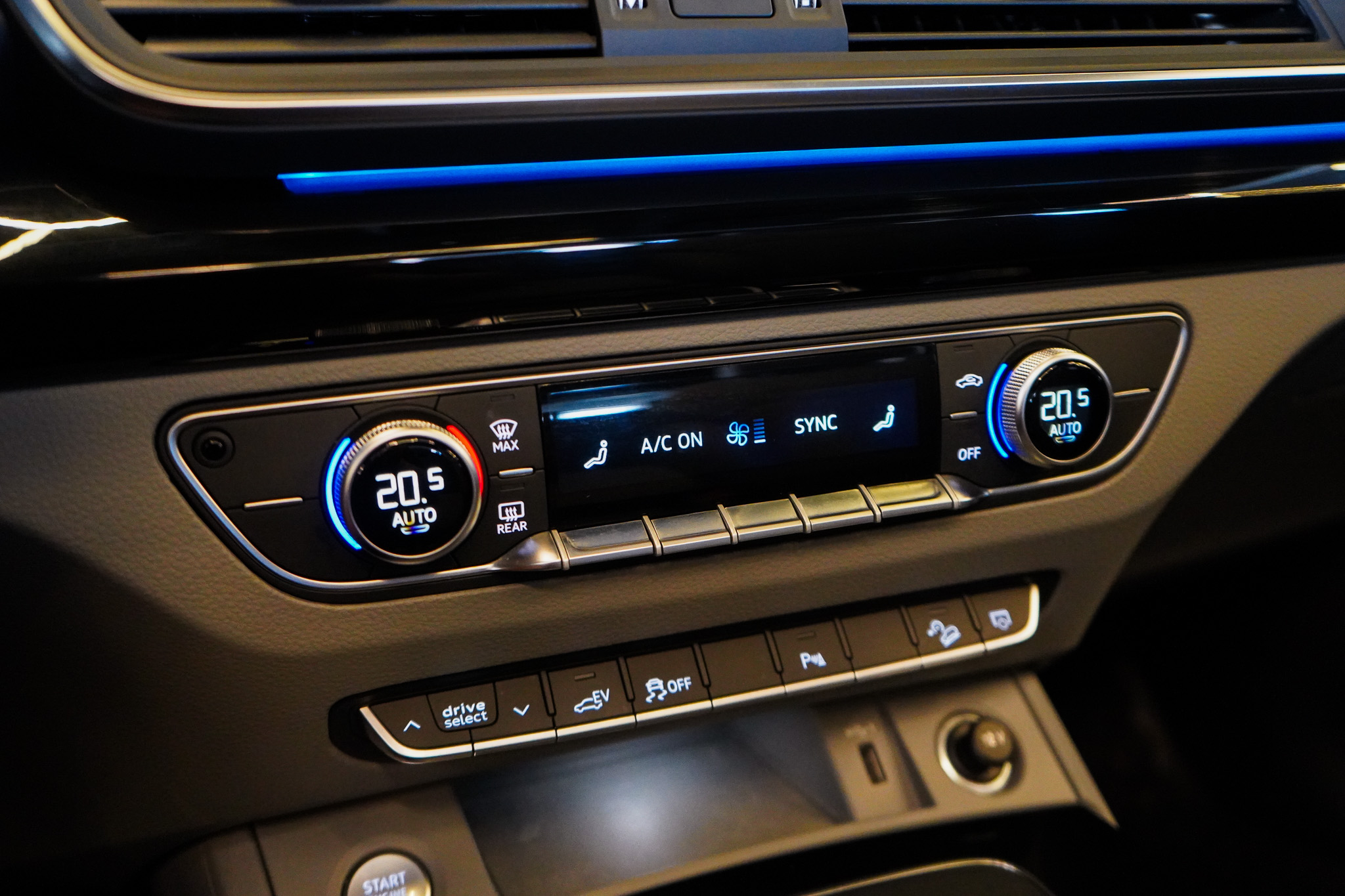 O interior reforça o padrão premium da Audi, com acabamento sofisticado e alto nível de conforto. O modelo oferece ar-condicionado automático de três zonas, bancos em couro com ajuste elétrico e memória, extensão frontal do assento do motorista, porta-copos e pára-choques na cor do veículo, teto solar elétrico panorâmico, porta-malas com abertura motorizada, chave presencial, Auto Hold e freio de estacionamento eletromecânico. Recursos como retrovisores rebatíveis eletricamente e fotocrômicos e iluminação interna refinada elevam a experiência a bordo.