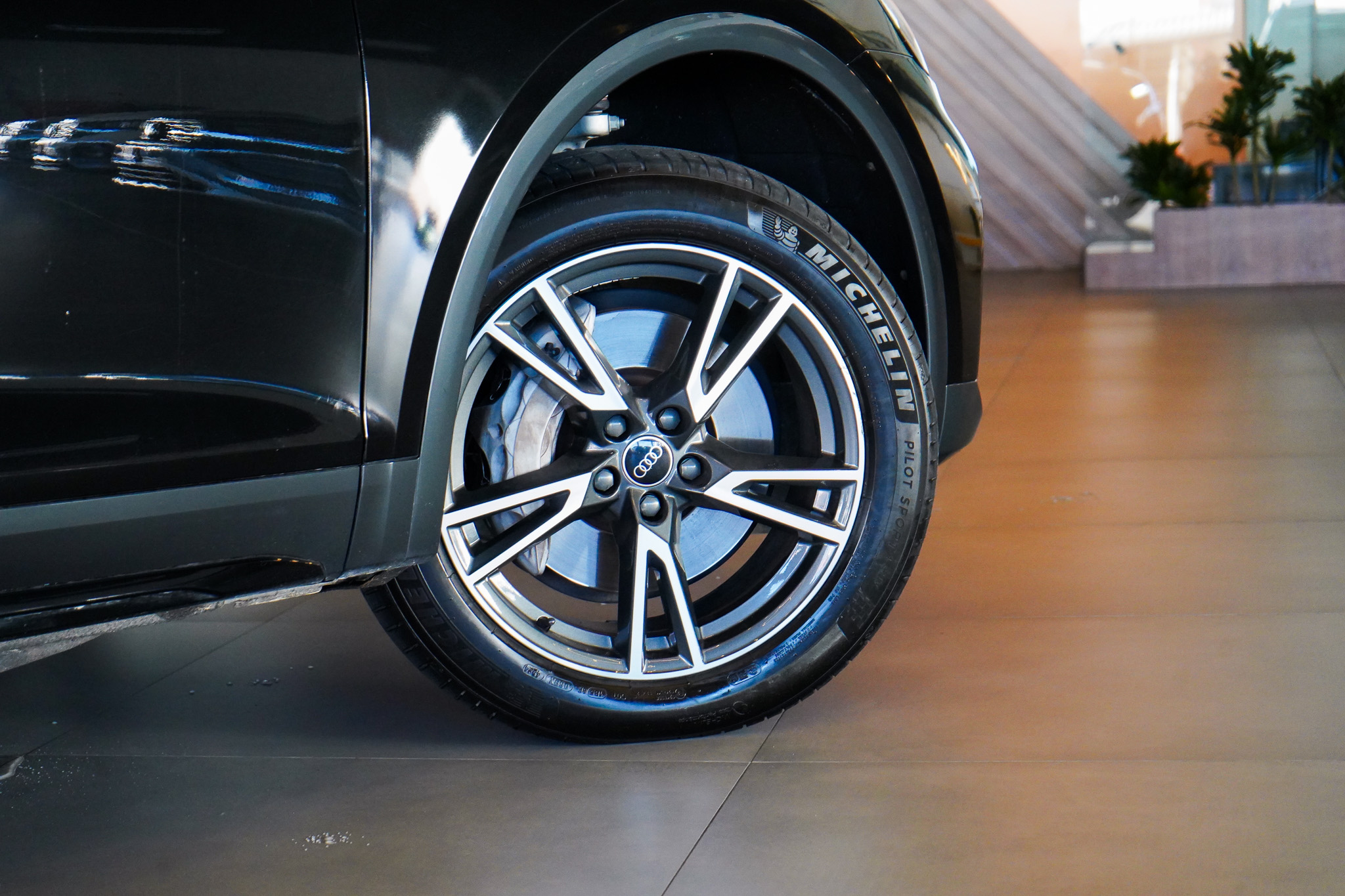 No campo da segurança, o modelo apresenta um pacote extremamente completo, com freios ABS, controle de estabilidade e tração integral, além de frenagem automática de emergência, Audi Pre Sense traseiro com assistente de tráfego reverso, Audi Side Assist com exit warning, alerta de colisão frontal, alerta de ponto cego, assistente de permanência em faixa e alerta de mudança de faixa. Conta também com assistente de descida, assistente de partida em rampa e frenagem automática em manobras. O conjunto de airbags inclui frontais, laterais e de cortina, além de ISOFIX e sensores de estacionamento dianteiros e traseiros.