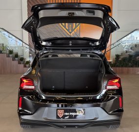 As dimensões incluem 4.163 mm de comprimento, 1.730 mm de largura, 1.476 mm de altura e 2.551 mm de entre-eixos, proporcionando bom aproveitamento interno. O porta-malas oferece 275 litros, com peso total de 1.085 kg e carga útil de 375 kg.