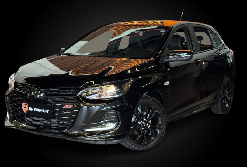 Chevrolet Onix RS 1.0 Turbo, ano 2025, configuração hatchback compacto, com 5 lugares e 4 portas, desenvolvido sobre a plataforma GEM e de procedência nacional, com garantia de 3 anos.