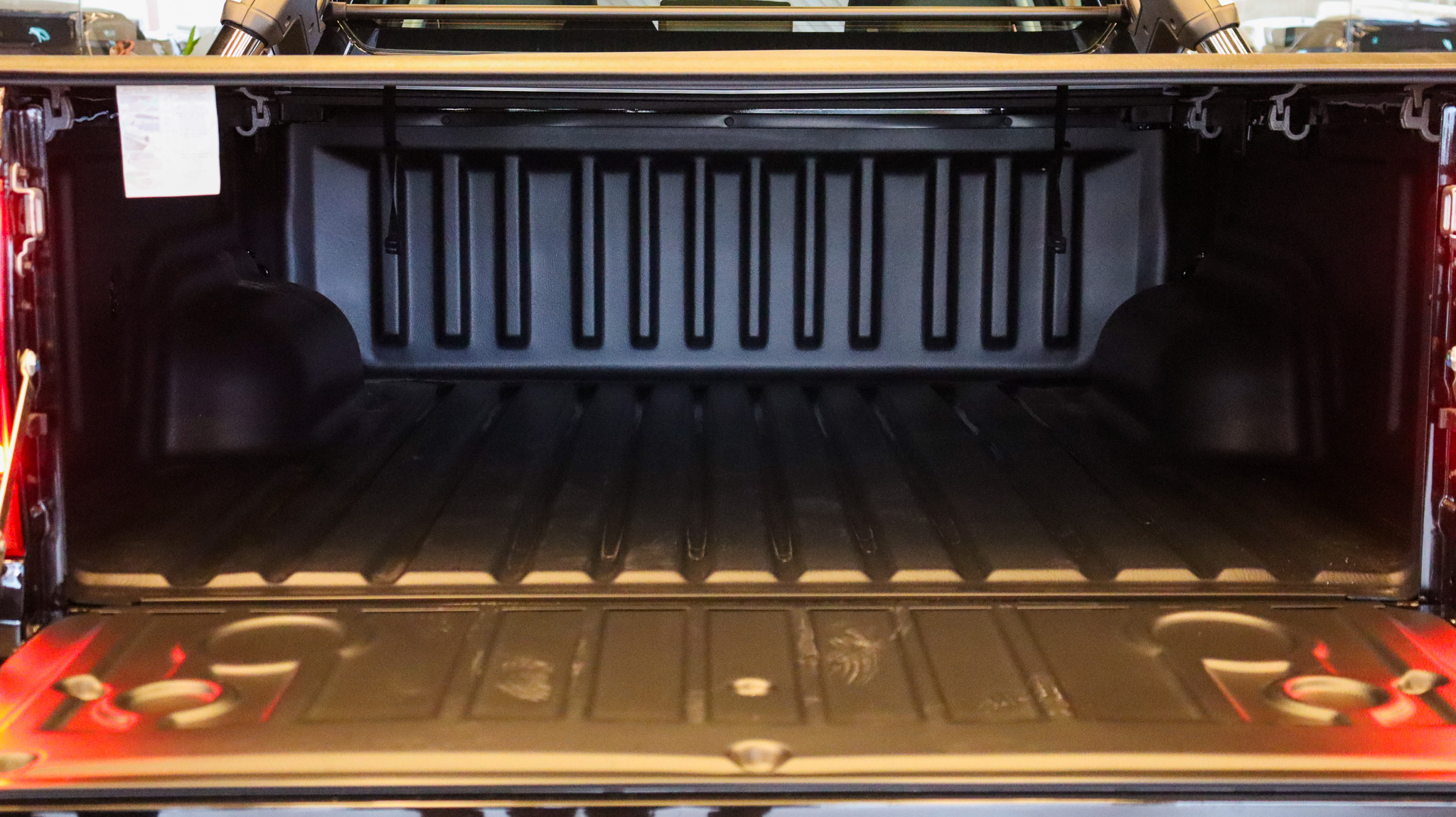 Em dimensões, são 5.330 mm de comprimento, 3.180 mm de entre-eixos, 1.963 mm de largura e 1.858 mm de altura, garantindo presença marcante e amplo espaço interno. A caçamba comporta 1.109 litros, com carga útil de 1.020 kg e capacidade de reboque com freio de 3.500 kg, reforçando seu perfil funcional. Conta ainda com 600 mm de capacidade de travessia em água e ângulos de entrada (29°) e saída (27°), atributos relevantes para uso fora de estrada.