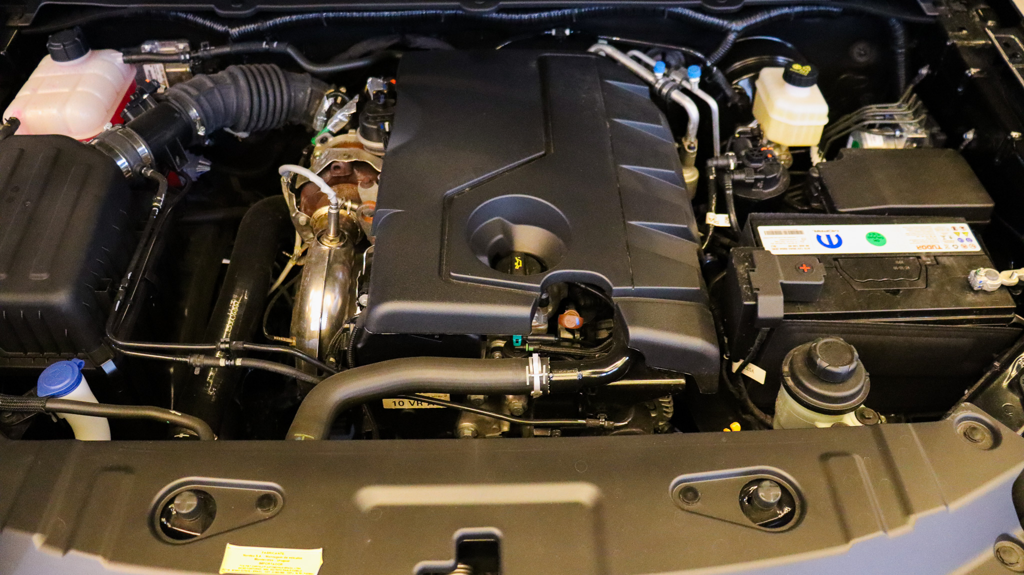 Equipada com motor 2.2 Diesel, 4 cilindros em linha, instalação dianteira longitudinal, 16 válvulas e injeção direta, entrega 180 cv a 3.750 rpm e 40,8 kgfm de torque a 2.000 rpm. A aspiração por turbocompressor, aliada ao câmbio automático de 6 marchas com conversor de torque, proporciona condução progressiva e força consistente em baixas rotações. A tração é integral temporária, ampliando a capacidade de deslocamento em terrenos de baixa aderência.