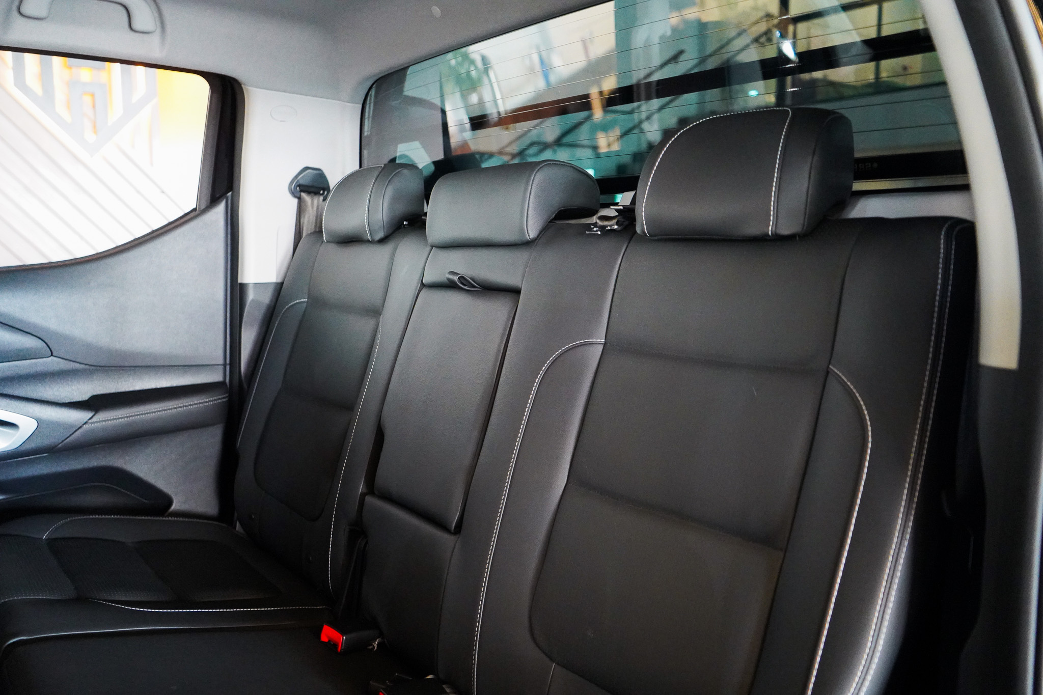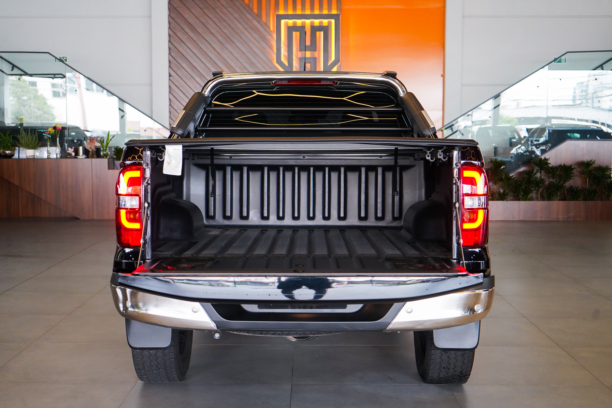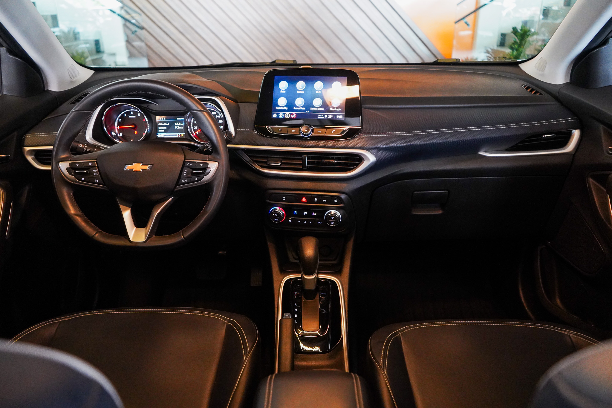 O conforto acompanha o porte da picape, com ar-condicionado automático digital de duas zonas, bancos em couro com ajustes elétricos, chave presencial, controle automático de velocidade, retrovisores com rebatimento elétrico e aquecimento, além de central multimídia com navegação GPS, espelhamento de smartphone, Bluetooth e conexão USB.