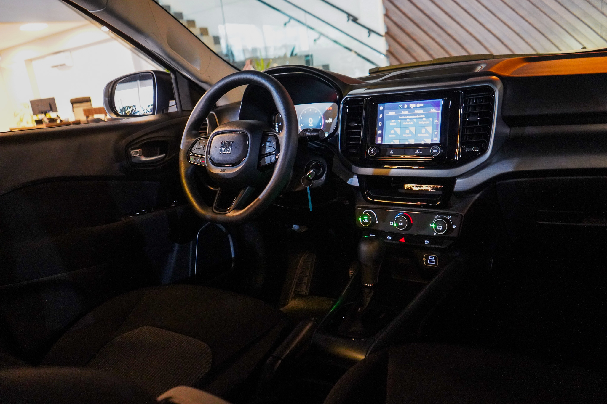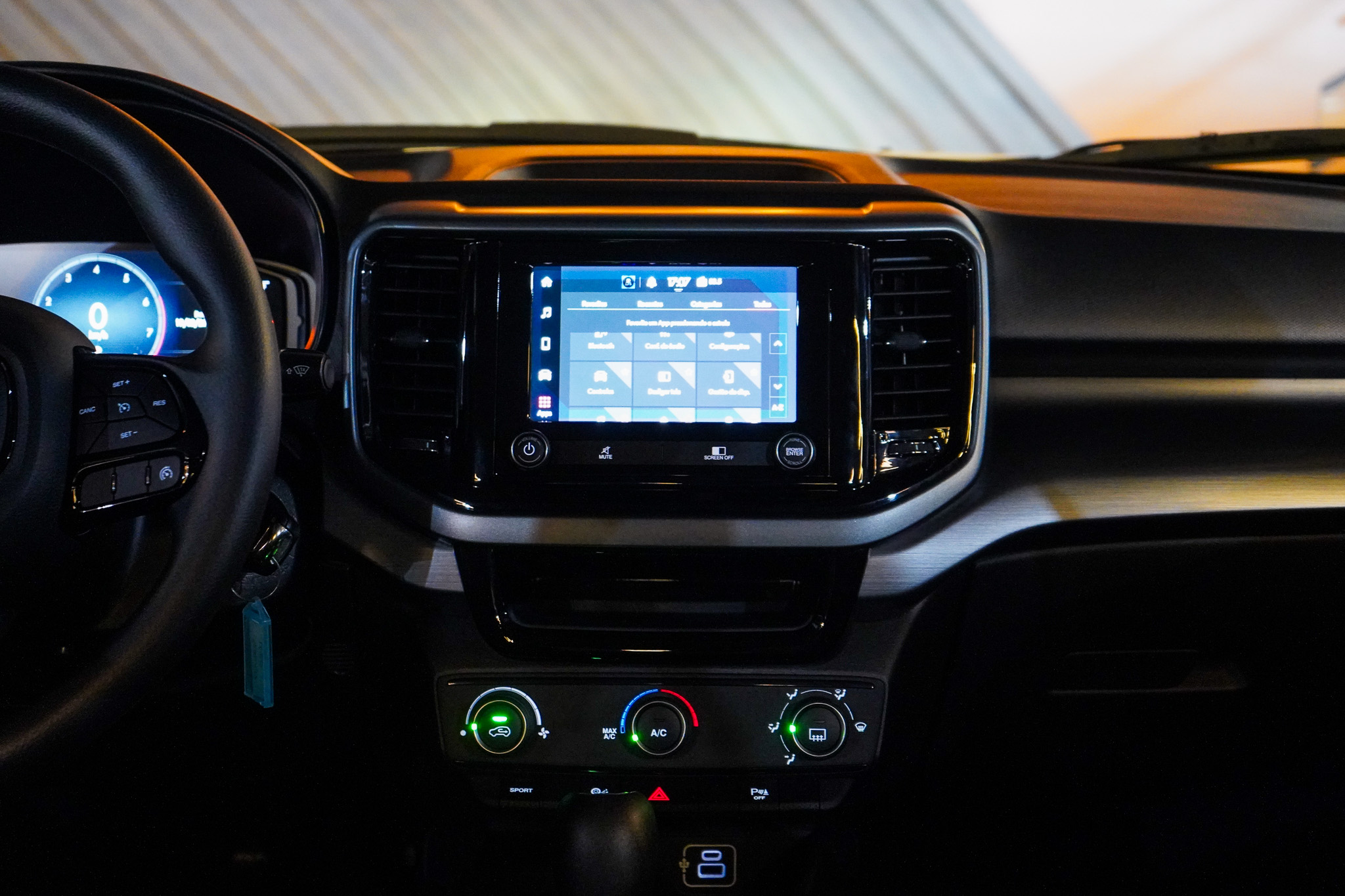 No entretenimento, dispõe de rádio, Bluetooth, conexão USB, computador de bordo, volante multifuncional e espelhamento da tela do celular.