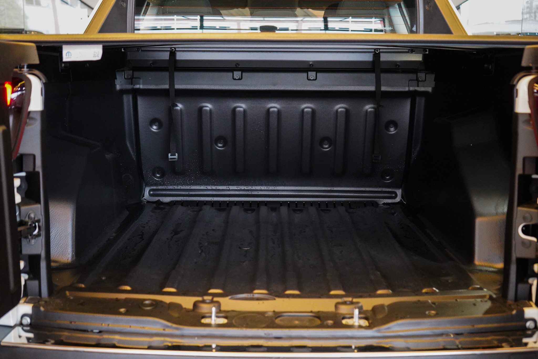 Em dimensões, são 4.945 mm de comprimento, 2.990 mm de entre-eixos, 1.845 mm de largura e 1.673 mm de altura, garantindo bom espaço interno e estabilidade. A caçamba possui 937 litros de capacidade, com carga útil de 750 kg. O peso é de 1.650 kg, e o modelo conta com ângulo de entrada de 24,8° e ângulo de saída de 27,7°, além de 248 mm de altura mínima do solo, reforçando a versatilidade.