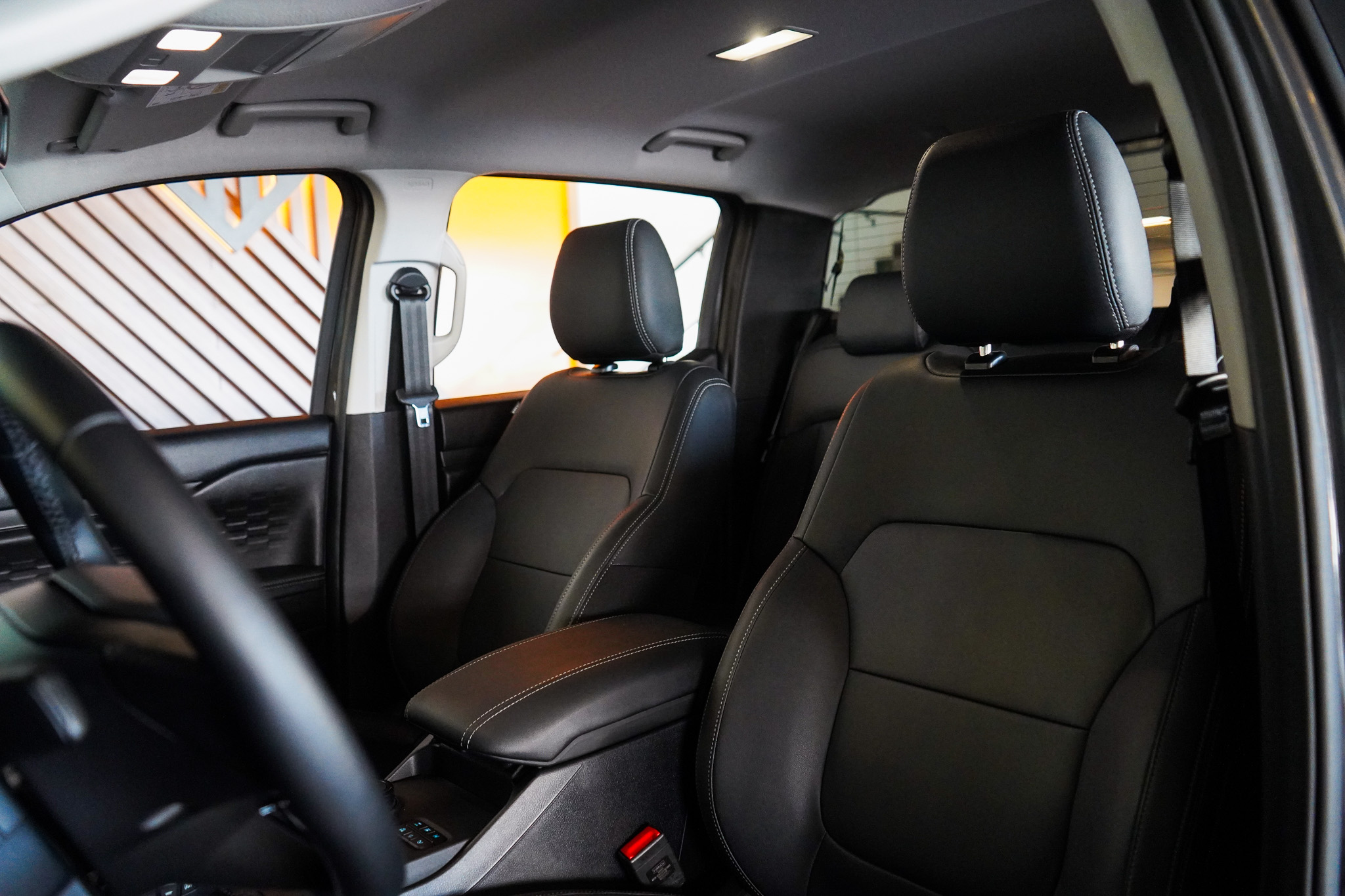 Em conforto e conveniência, a Ranger XLT oferece ar-condicionado, direção assistida, banco do motorista com ajustes elétricos, bancos revestidos em couro, controle automático de velocidade, vidros elétricos nas quatro portas, retrovisores com ajuste elétrico e rebatimento, freio de estacionamento eletromecânico, sistema start-stop e acionamento remoto do motor, além de banco traseiro rebatível e amplo pacote de funcionalidades internas.