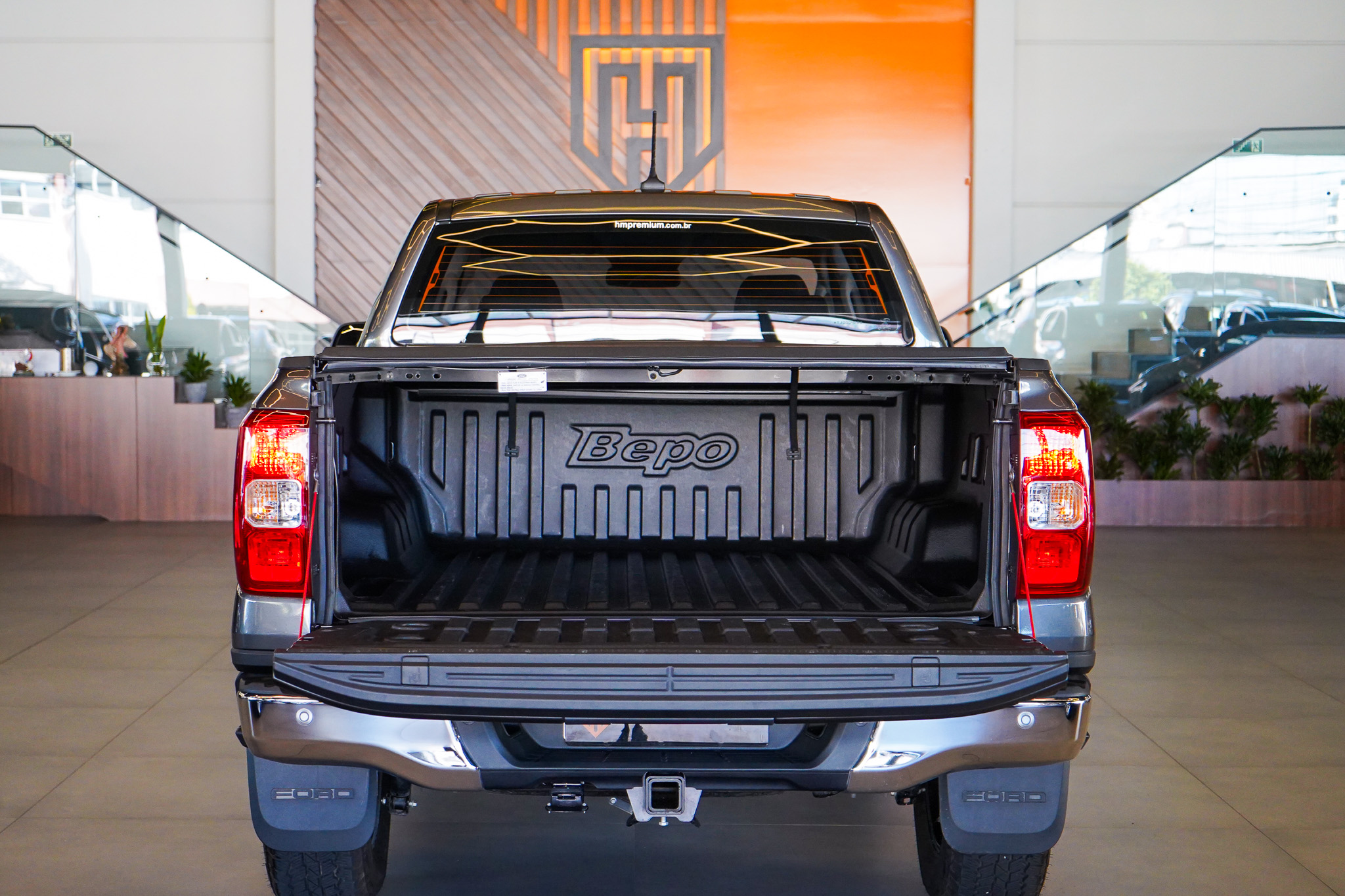 No consumo, a picape registra 8,6 km/l no ciclo urbano e 10,1 km/l no rodoviário, com tanque de combustível de 80 litros, garantindo autonomia aproximada de 688 km na cidade e 808 km na estrada, favorecendo longas viagens e uso profissional.