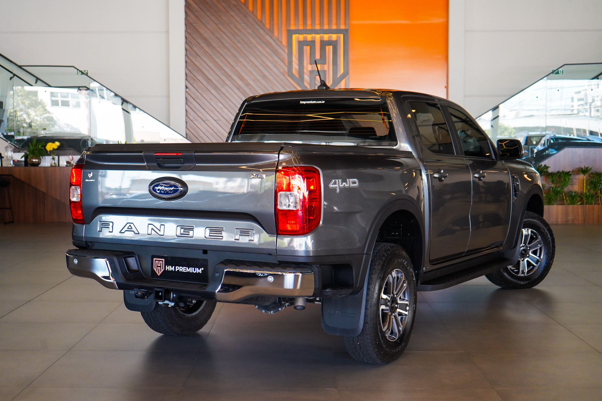 Em dimensões, a Ranger apresenta 5.354 mm de comprimento, 1.918 mm de largura e 1.886 mm de altura, com entre-eixos de 3.270 mm, proporcionando cabine ampla e confortável. A caçamba possui capacidade de 1.250 litros e a carga útil é de 1.037 kg, reforçando sua vocação para transporte de carga pesada. A altura mínima do solo é de 235 mm, e o modelo conta com capacidade de travessia em água de 800 mm, além de ângulos off-road que favorecem a condução fora de estrada.
