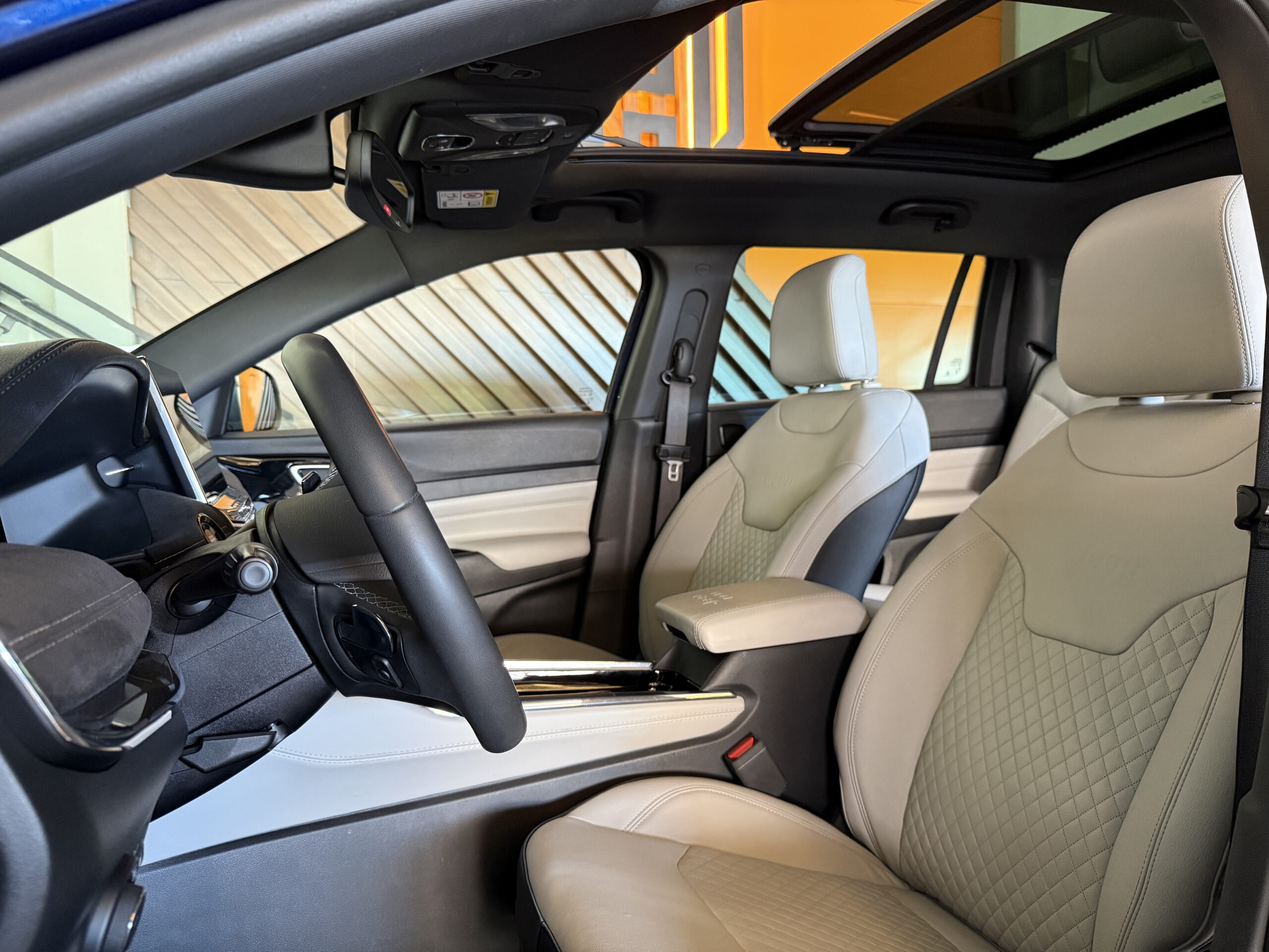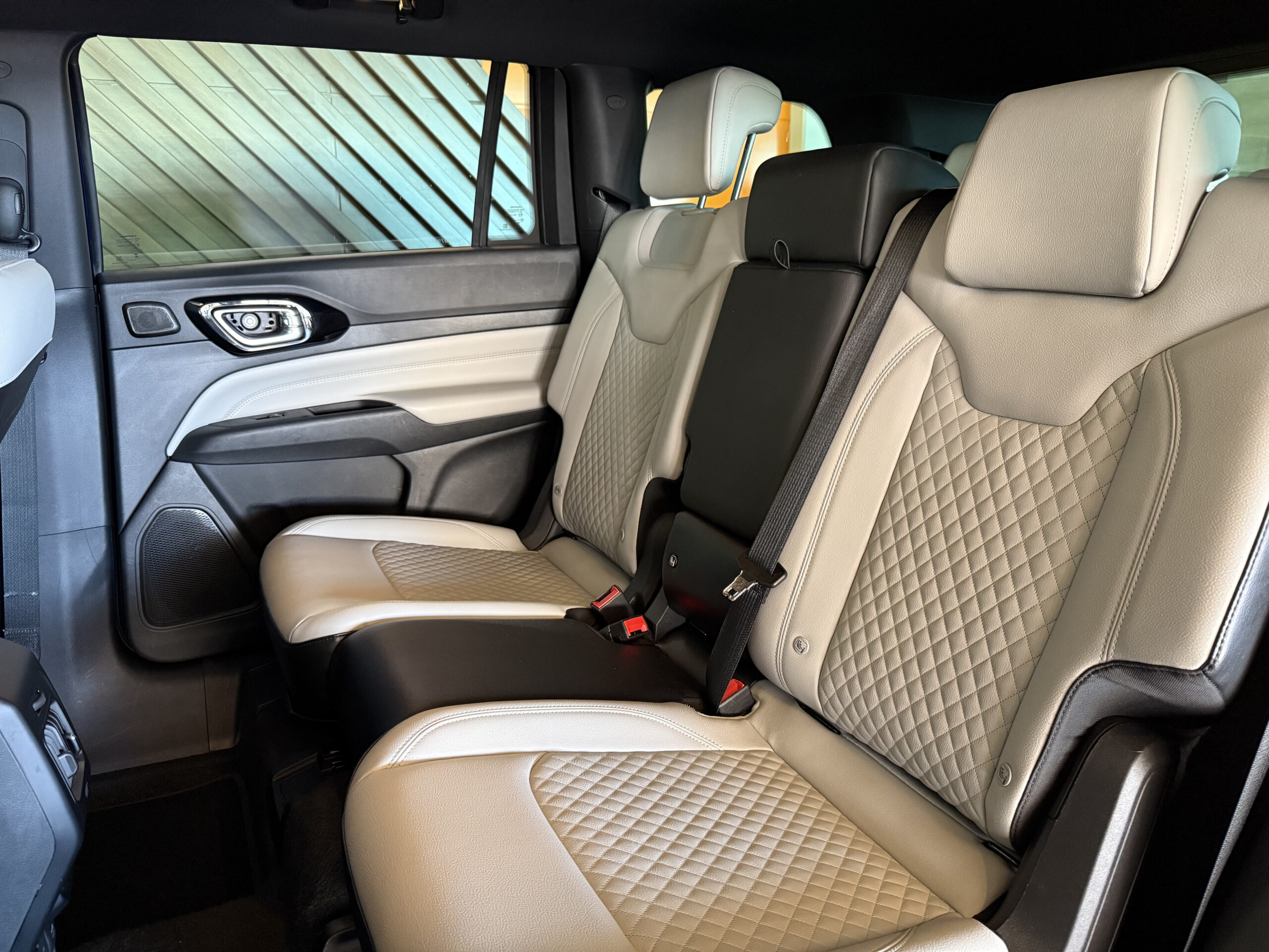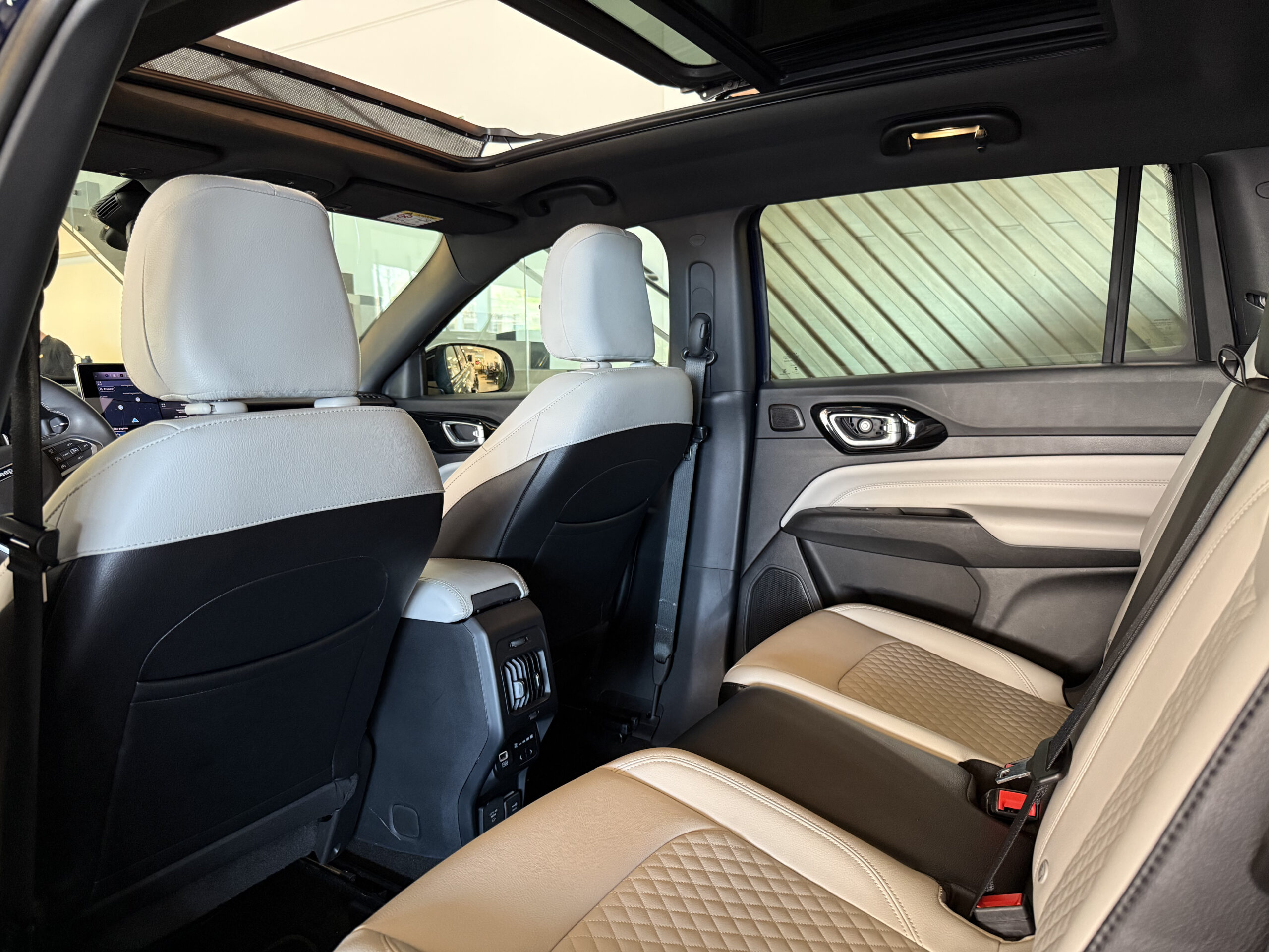 No conforto, o Commander Overland se destaca por oferecer bancos revestidos em couro, banco do motorista com ajustes elétricos, ar-condicionado automático digital com duas zonas, saídas de ar para o banco traseiro, terceira fileira de bancos, teto panorâmico, chave presencial, partida por botão, freio de estacionamento eletromecânico, porta-malas com abertura interna e remota e banco traseiro corrediço, bipartido e reclinável, permitindo flexibilidade de espaço conforme a necessidade.