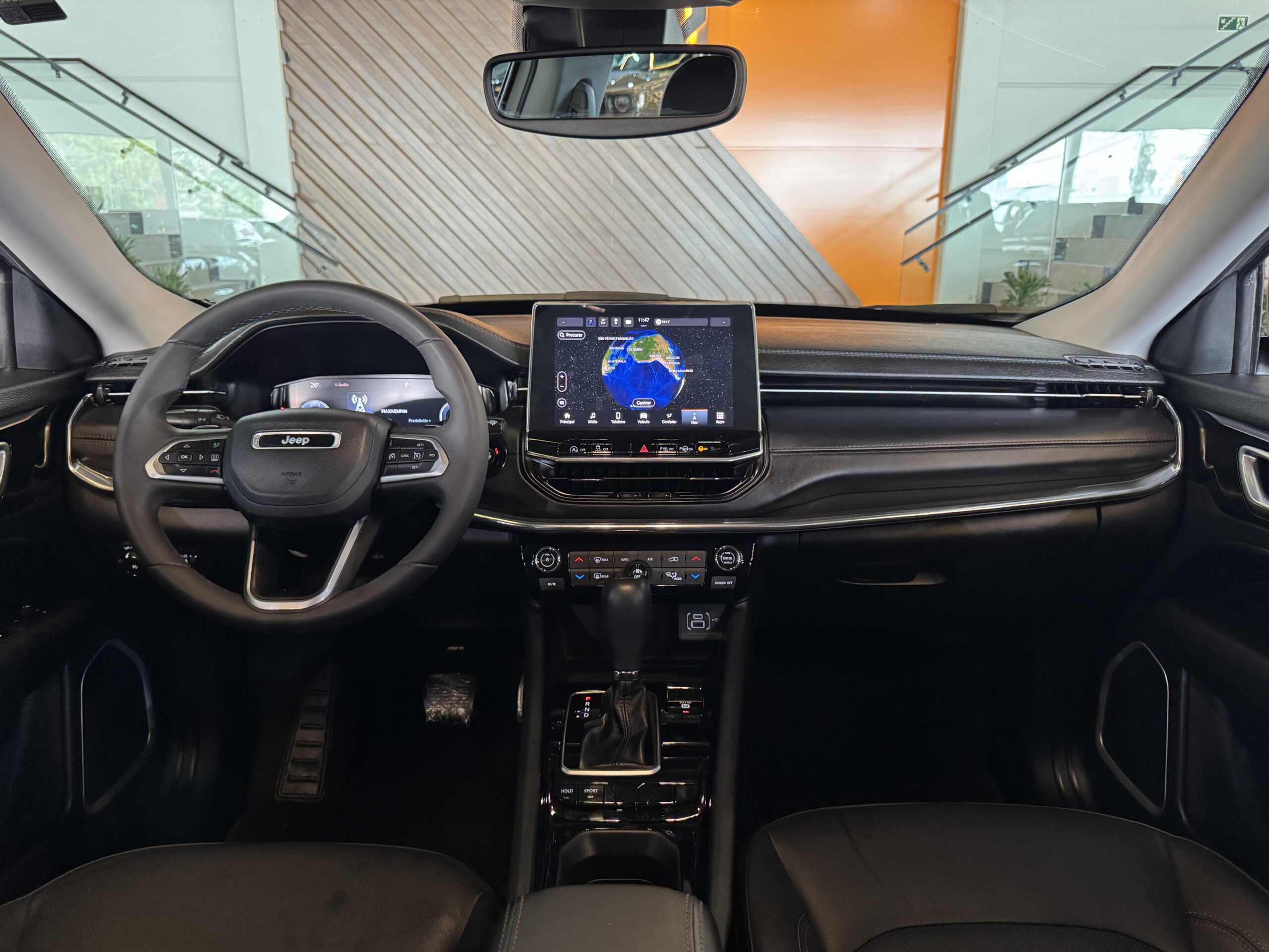 O interior oferece alto padrão de conforto, com bancos em couro, banco do motorista com ajuste elétrico, ar-condicionado digital automático dual zone com saída de ar para o banco traseiro, além de soluções inteligentes como compartimento abaixo do banco do passageiro e múltiplas tomadas USB e 12V.