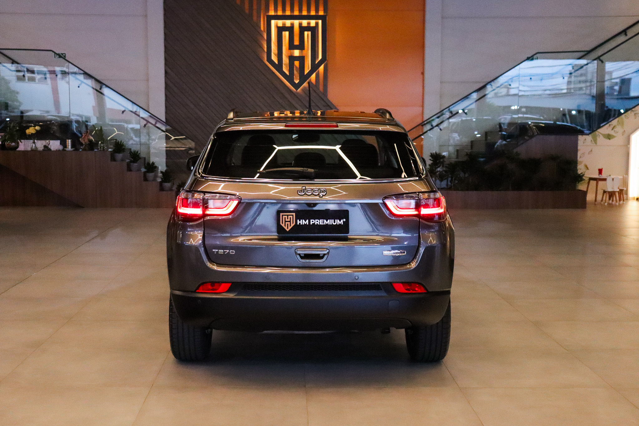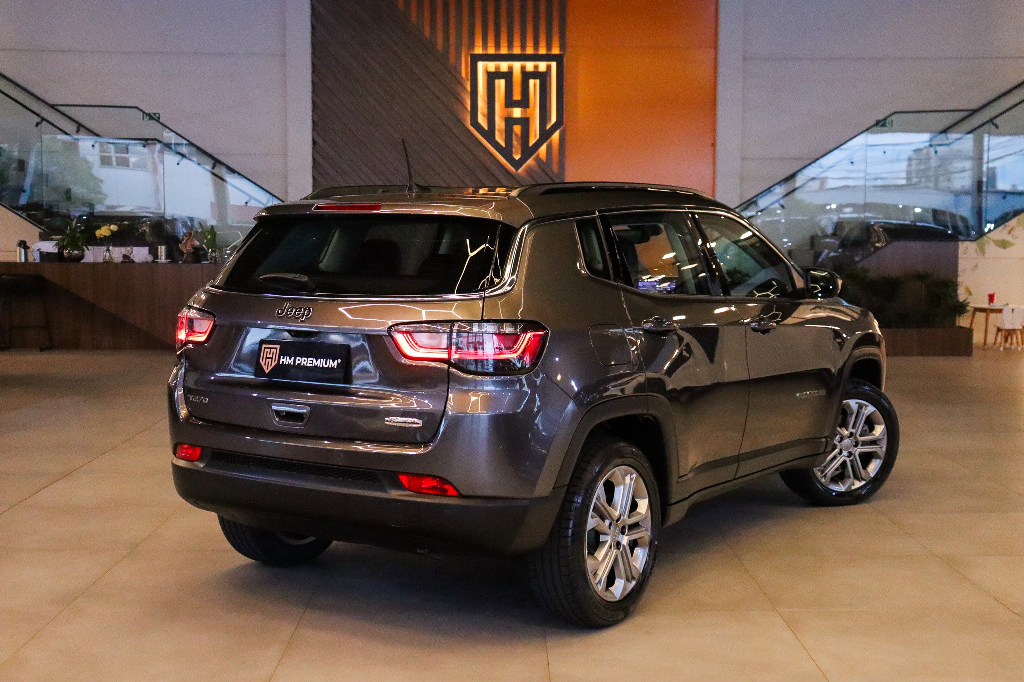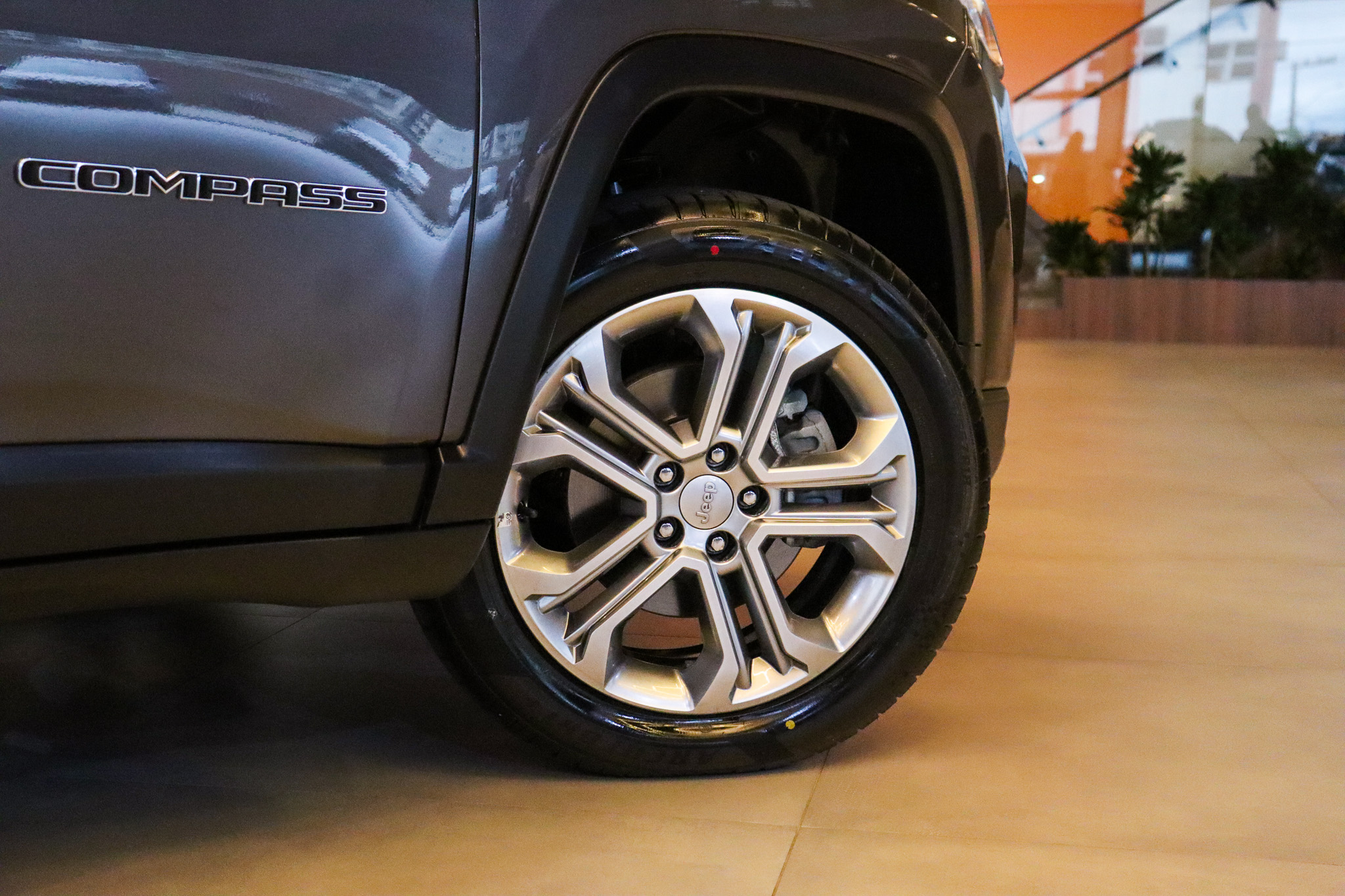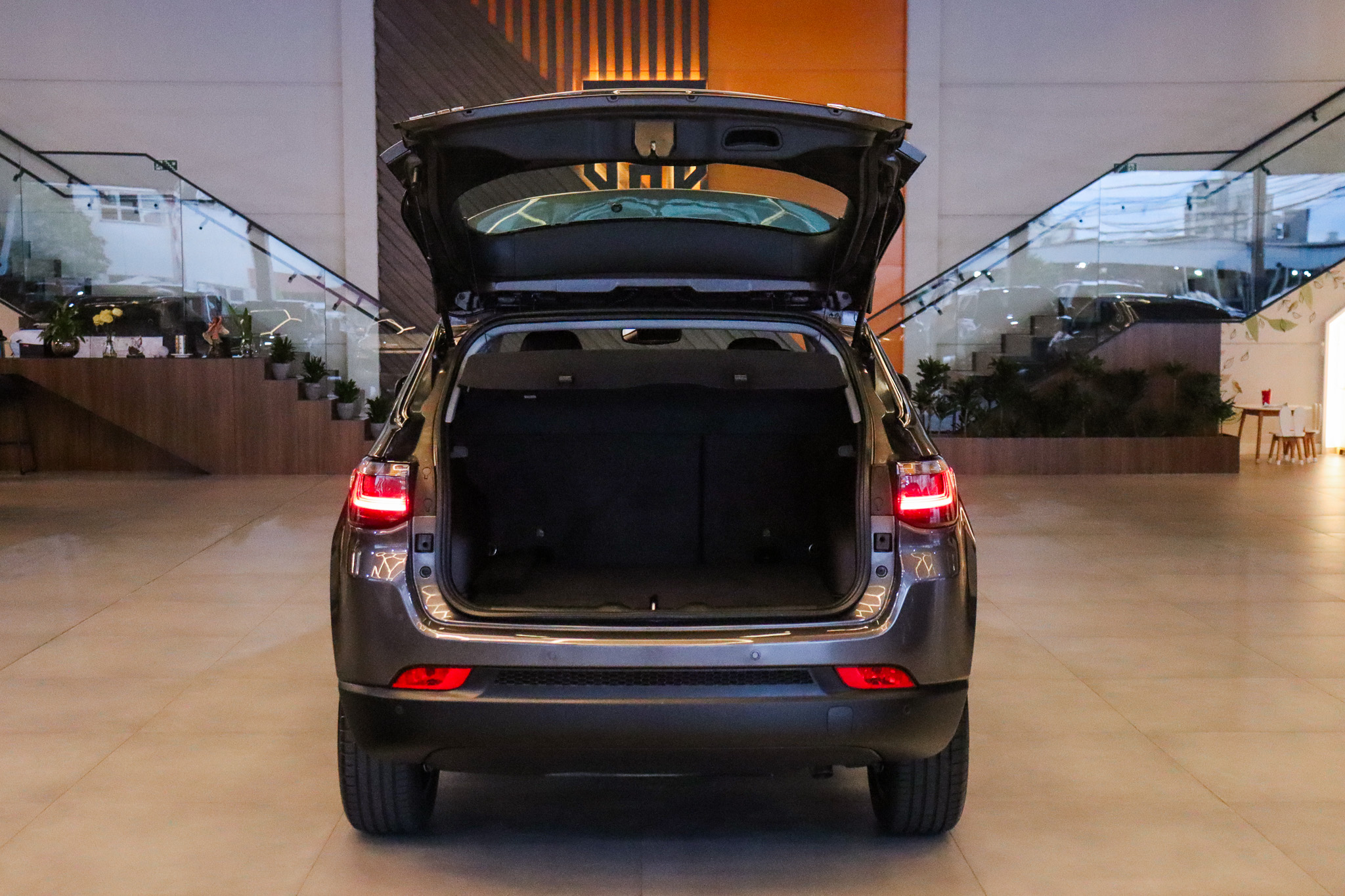 Em dimensões, o Compass possui 4.404 mm de comprimento, 1.819 mm de largura e 1.628 mm de altura, com entre-eixos de 2.636 mm, oferecendo bom espaço interno para os ocupantes. O porta-malas conta com 410 litros, adequado para uso familiar. O peso total é de 1.585 kg, e a altura mínima do solo é de 205 mm, contribuindo para versatilidade em diferentes tipos de piso.