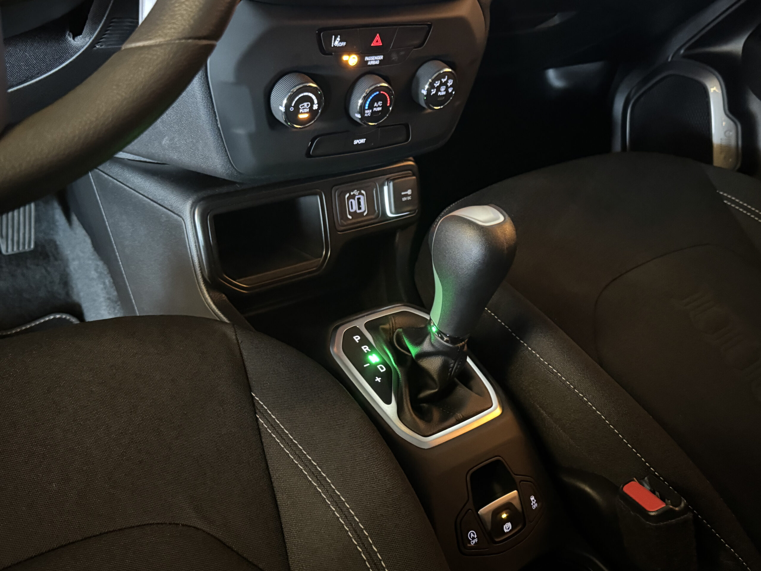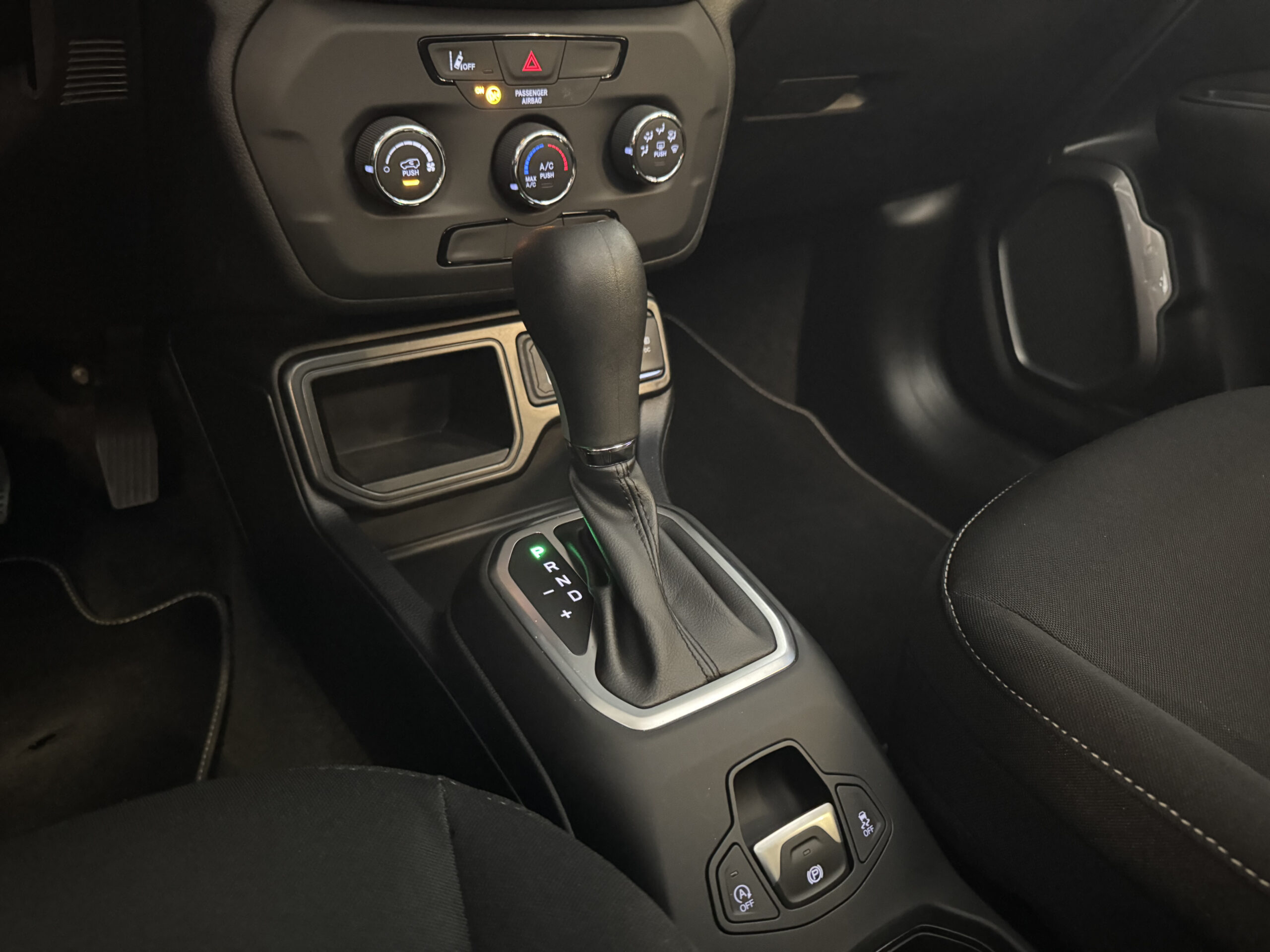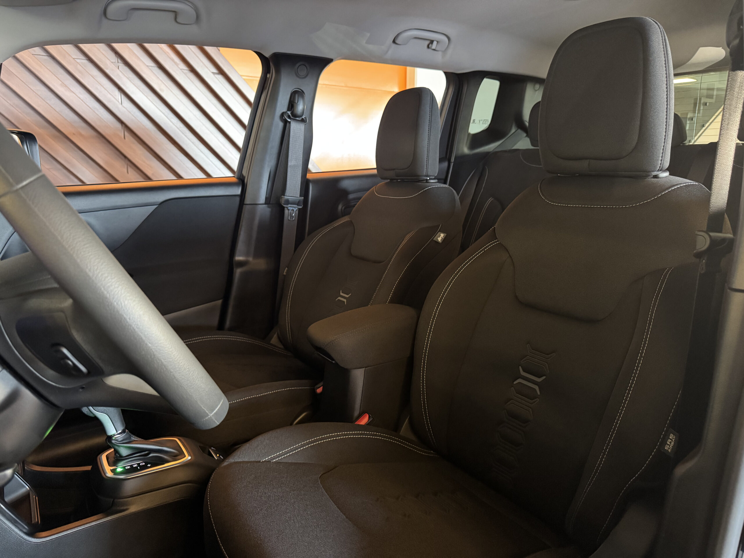 No conforto, o Renegade oferece ar-condicionado, banco traseiro bipartido, controle elétrico dos vidros dianteiros e traseiros, ajuste elétrico dos retrovisores, banco do motorista com ajuste de altura, apoio de braço, volante com regulagem de altura e profundidade, limitador de velocidade e suspensão independente nas quatro rodas, garantindo suavidade e estabilidade em qualquer situação. Dispõe ainda de destravamento remoto do porta-malas, freio de estacionamento eletromecânico, rodas de liga leve e diversos porta-objetos internos.
