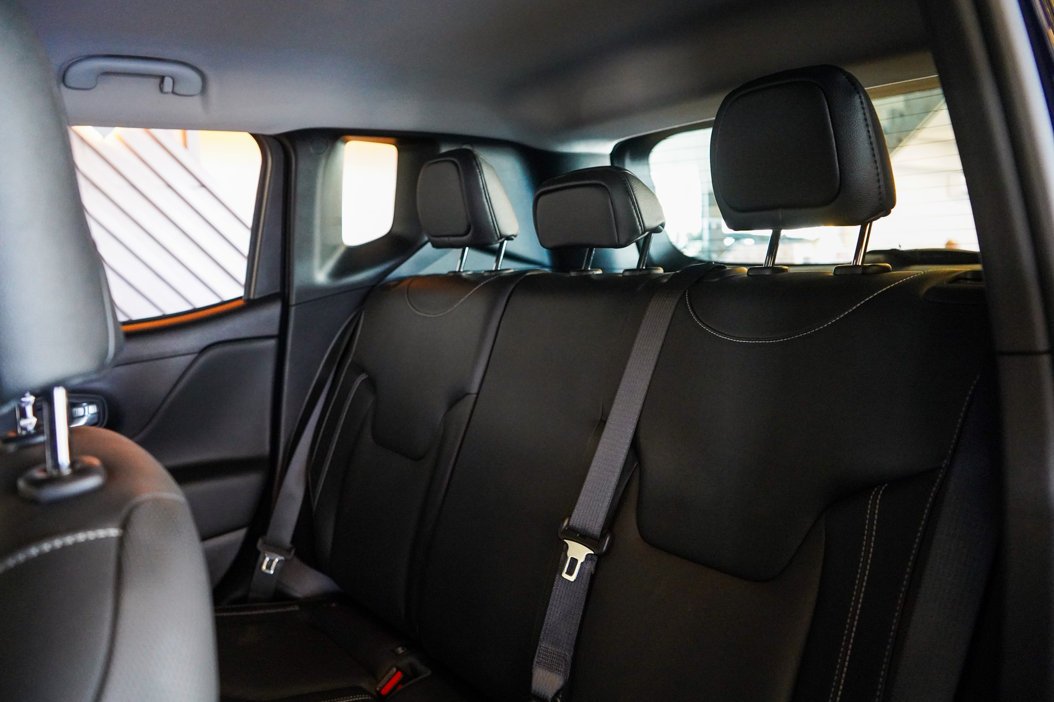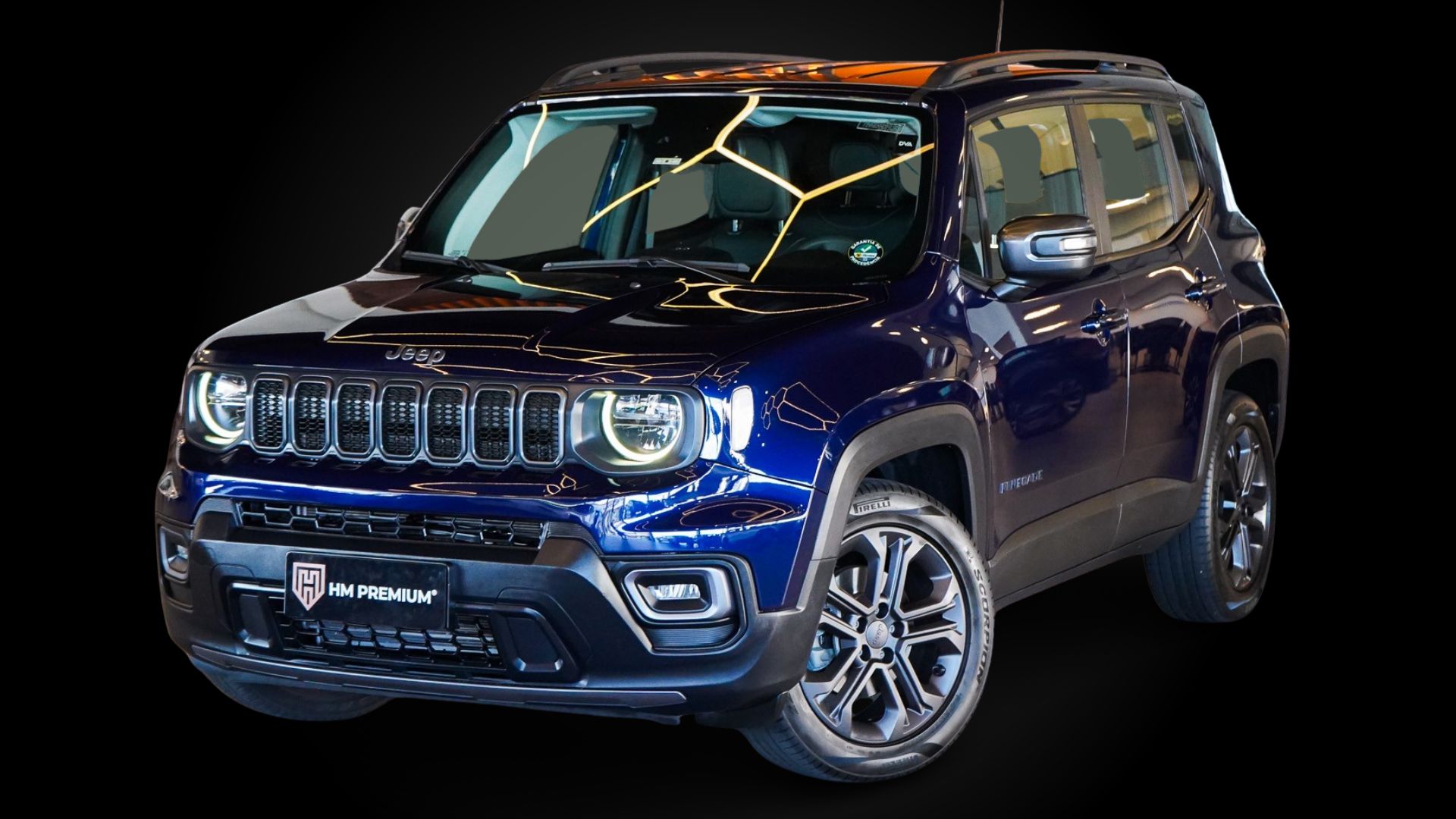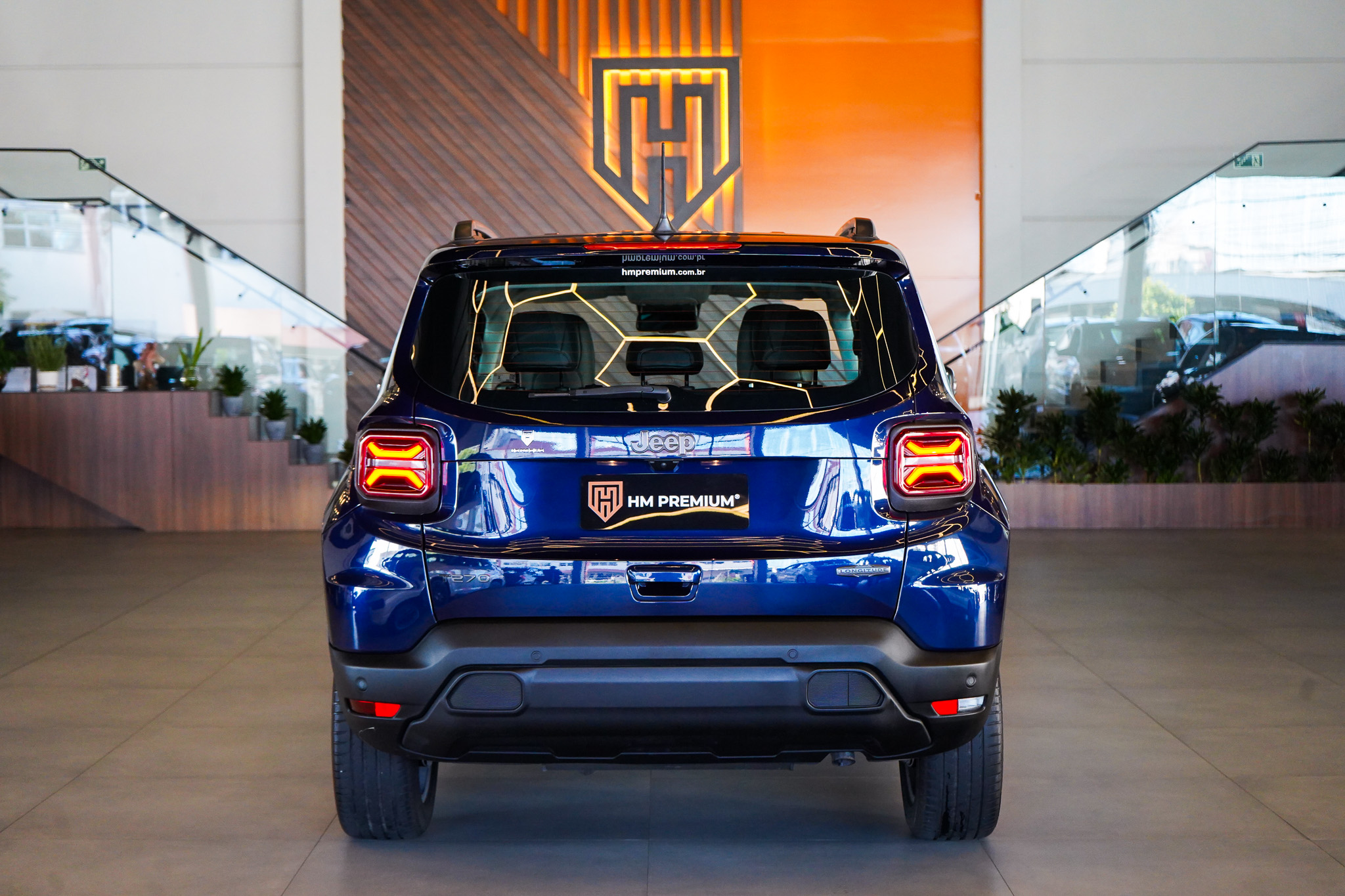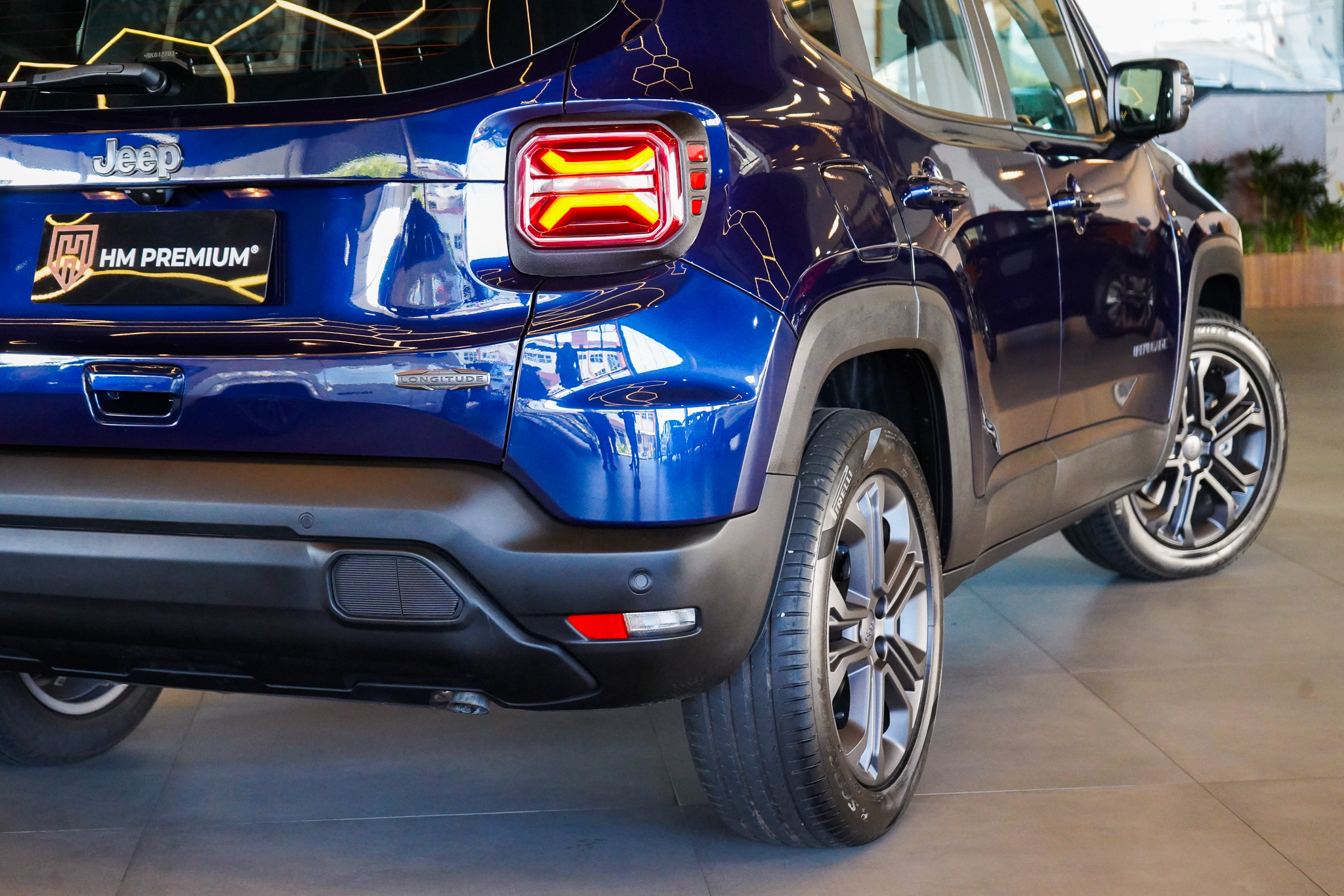 Em dimensões, o Renegade mede 4.268 mm de comprimento, 1.805 mm de largura e 1.702 mm de altura, com entre-eixos de 2.570 mm. O porta-malas comporta 320 litros, o tanque de combustível 55 litros e o peso total é de 1.476 kg. A altura mínima do solo é de 192 mm, com ângulos de entrada de 22° e saída de 32°, preservando a identidade Jeep mesmo no uso urbano.