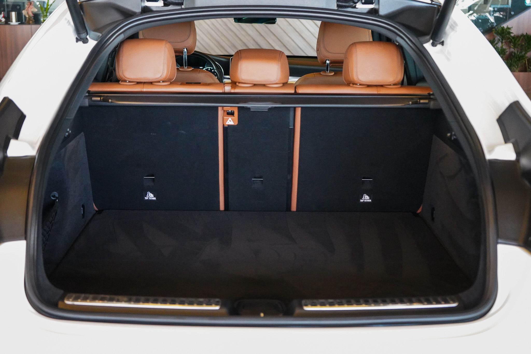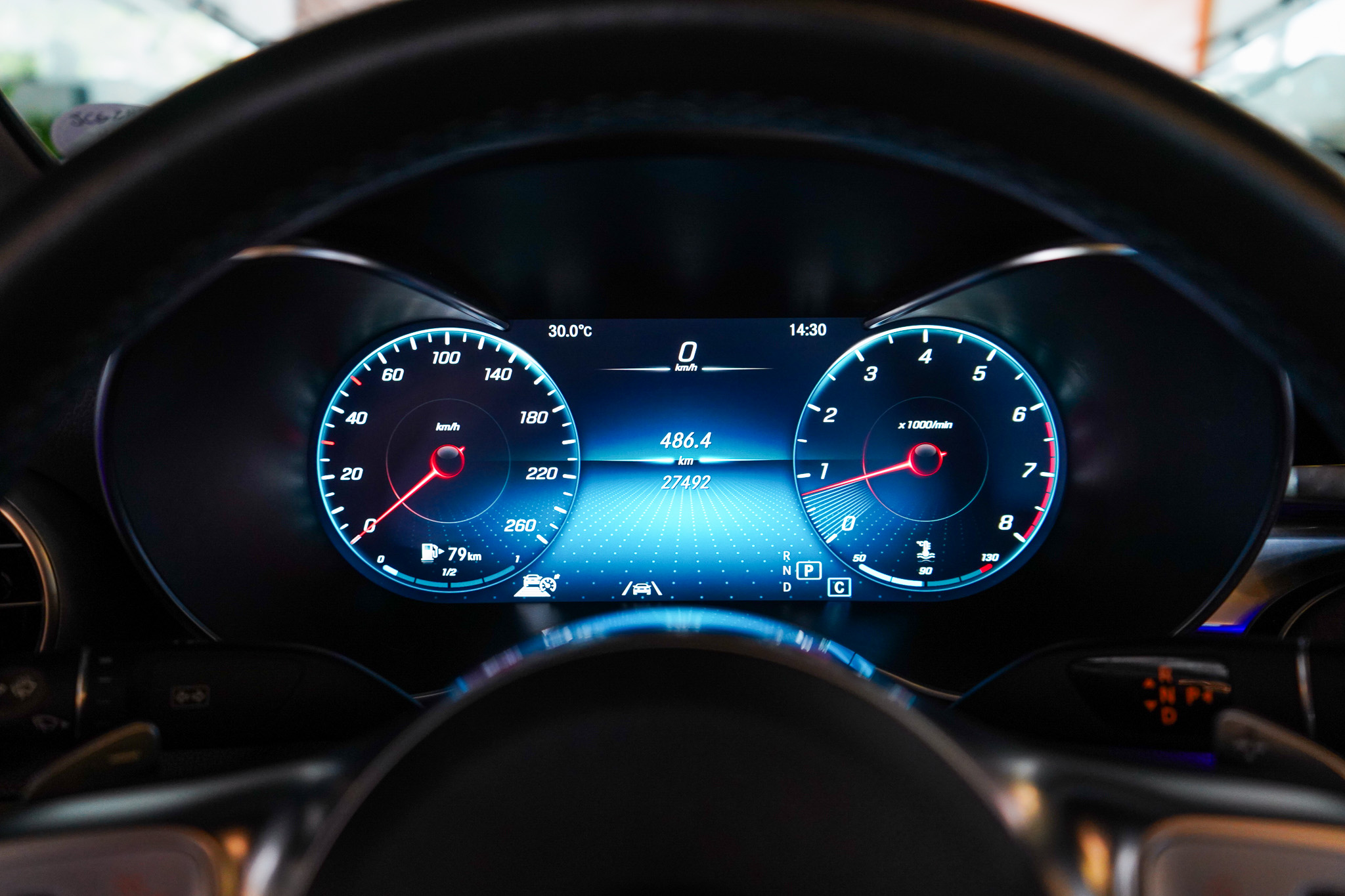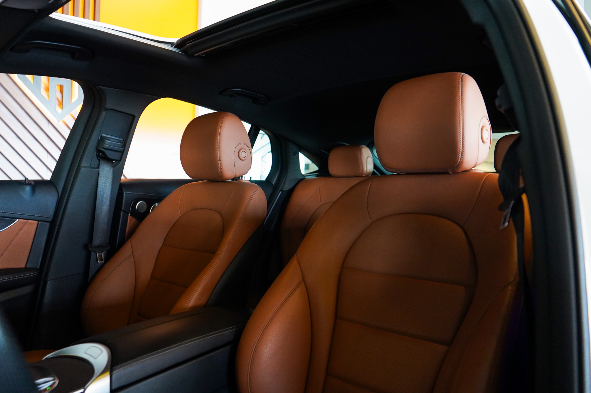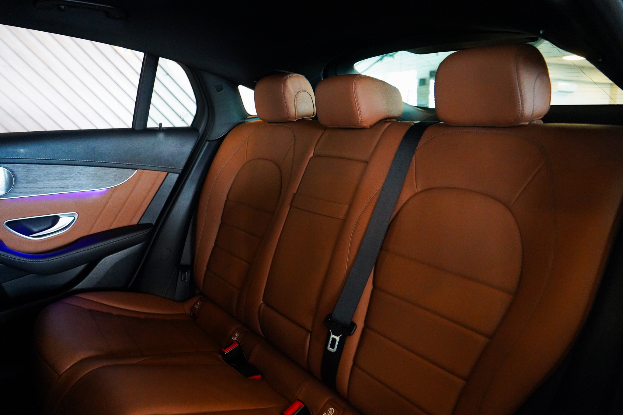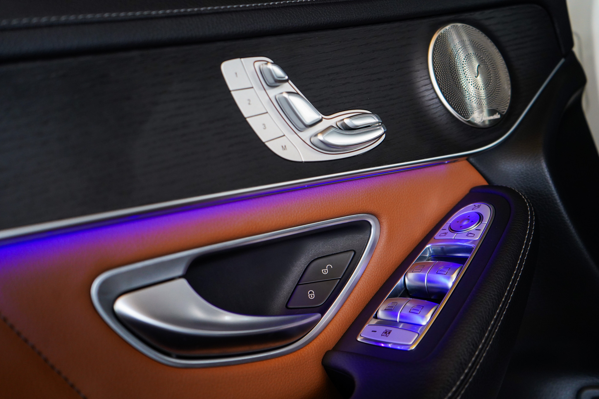 O ambiente interno evidencia o padrão Mercedes-Benz, com ar-condicionado automático digital de duas zonas, bancos em couro com ajustes elétricos e memória, teto solar elétrico, chave presencial, sistema Auto Hold, tampa traseira motorizada e acabamento refinado. A experiência sonora é elevada pelo sistema de som Burmester, enquanto a central multimídia oferece espelhamento de smartphone, Bluetooth, USB e carregador de celular por indução.