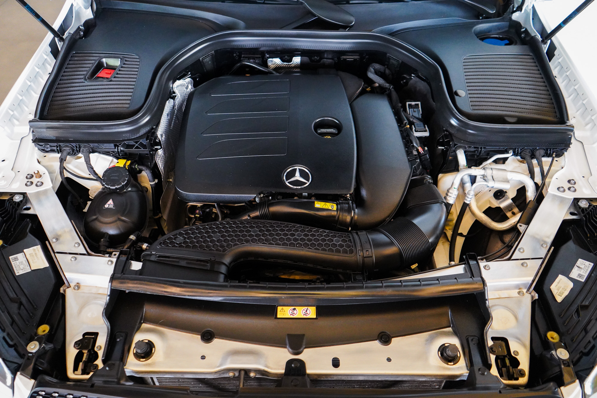 Sob o capô, traz motor 2.0 Turbo a gasolina, com 258 cv a 5.800 rpm e 37,7 kgfm a 1.800 rpm, entregando respostas vigorosas desde baixas rotações. O conjunto trabalha com câmbio automático de 9 marchas 9G-Tronic e tração integral permanente, proporcionando condução estável, trocas suaves e excelente controle dinâmico. A aceleração de 0 a 100 km/h em 6,3 segundos e a velocidade máxima de 240 km/h reforçam o caráter esportivo da versão AMG Line.