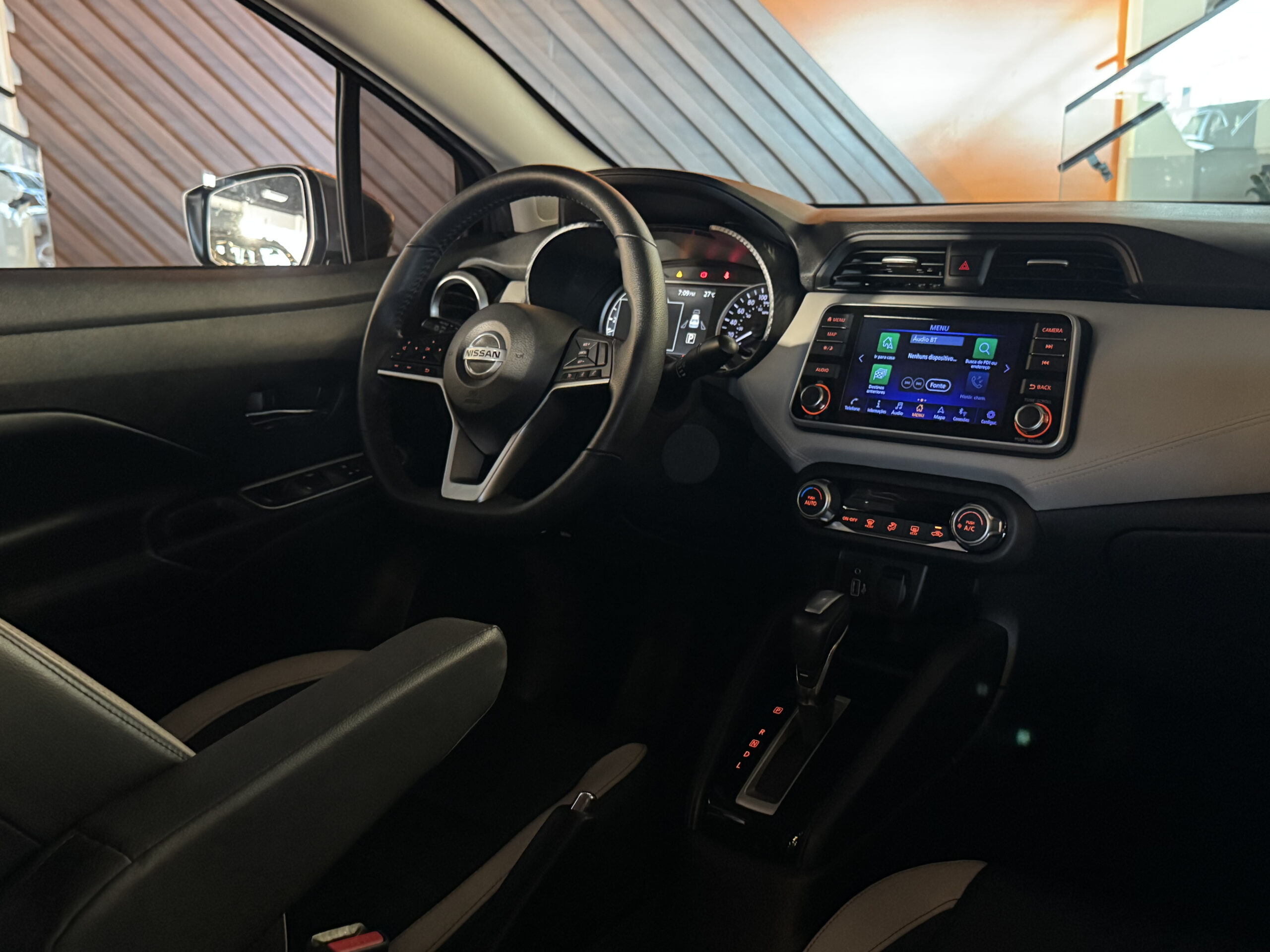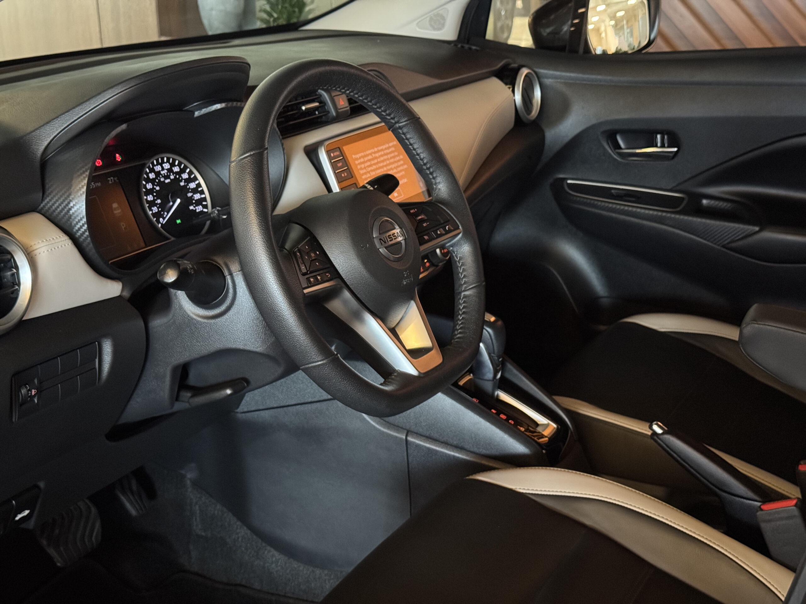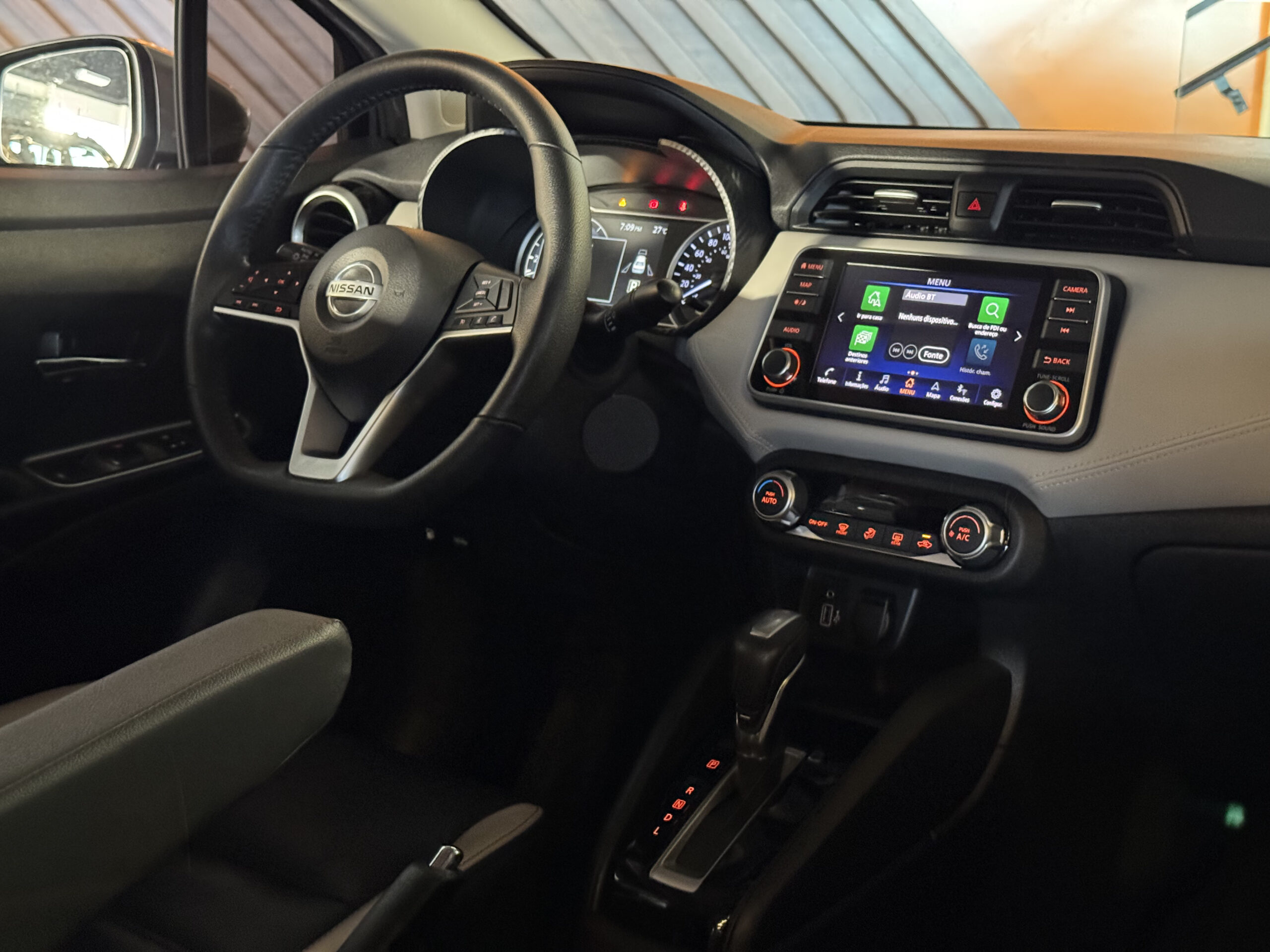 No entretenimento e conectividade, o Versa Exclusive oferece sistema multimídia com espelhamento de tela do celular, Bluetooth, navegador GPS, USB, tomada 12V, computador de bordo e indicador de temperatura externa.
