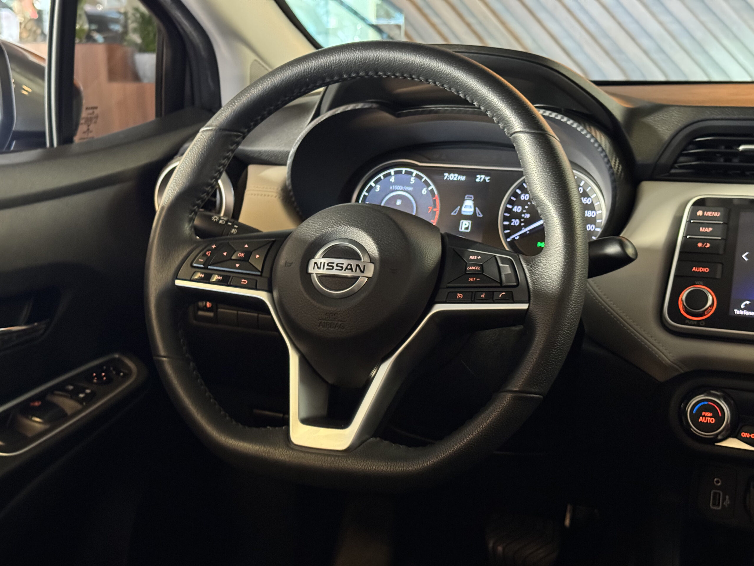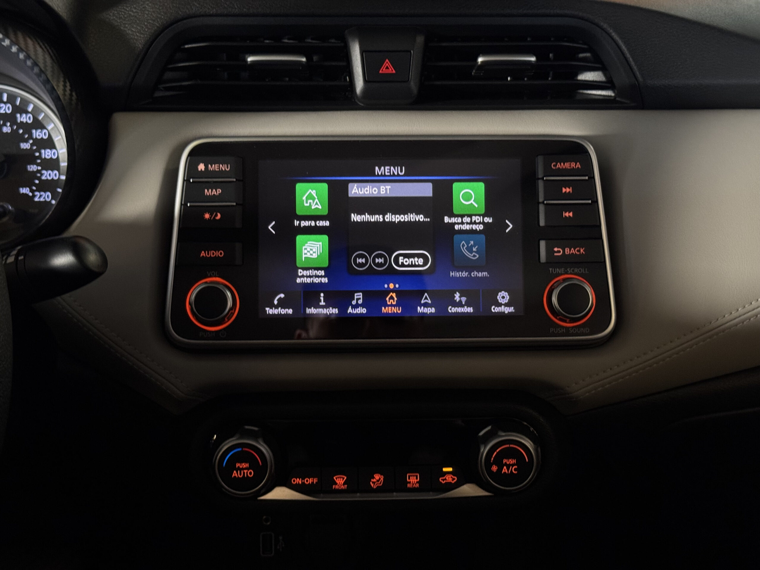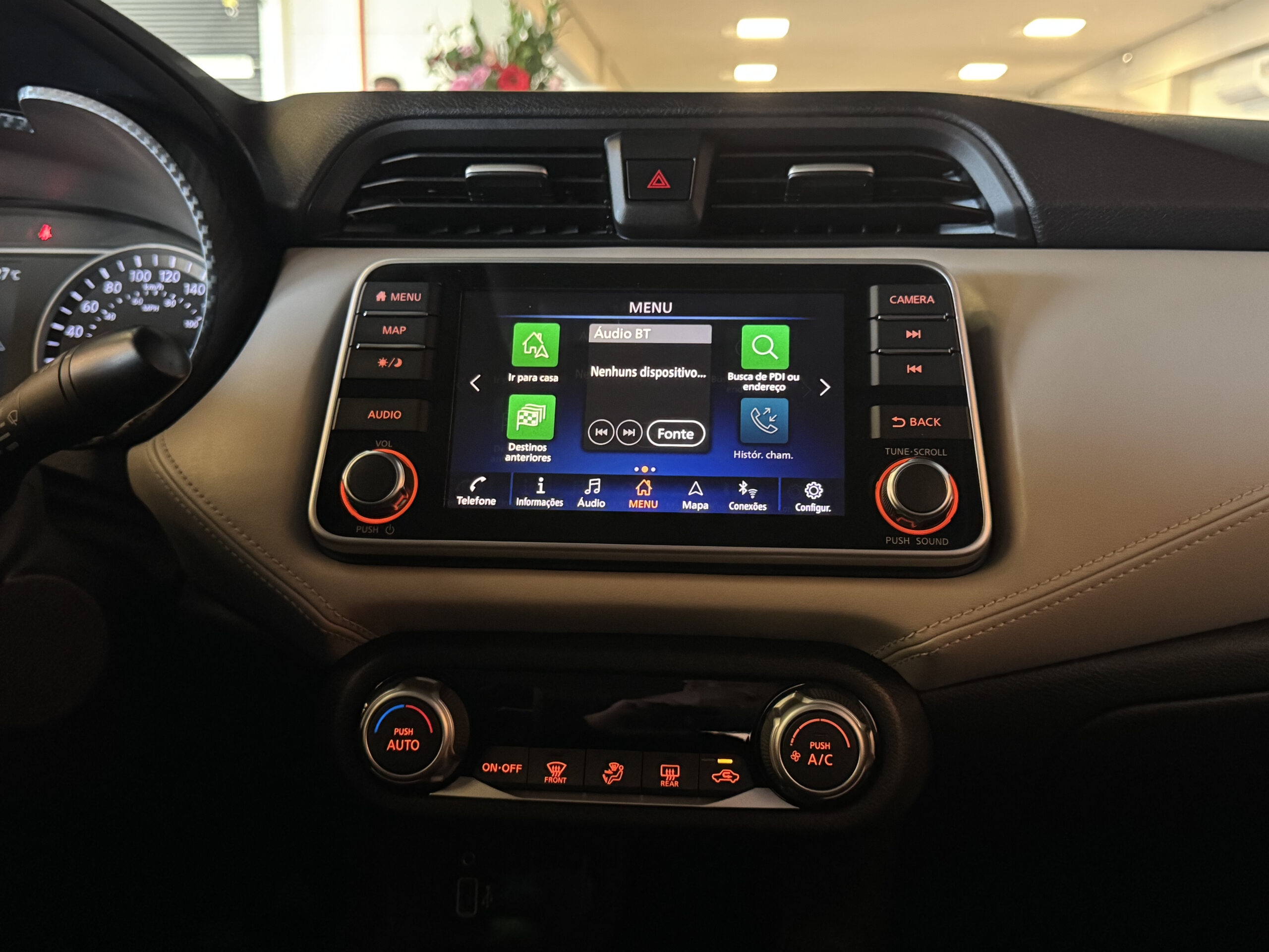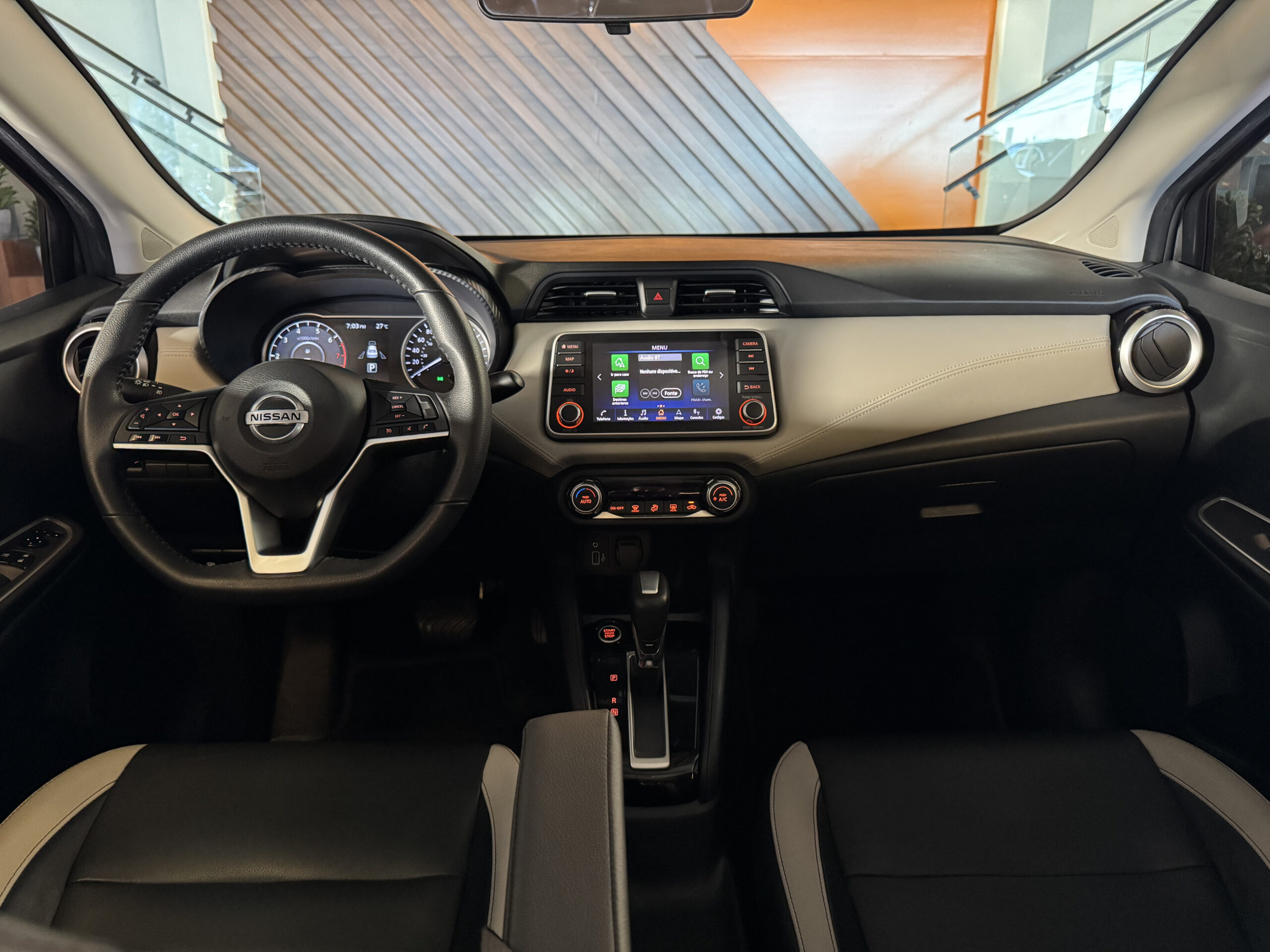 No entretenimento e conectividade, o Versa Exclusive oferece sistema multimídia com espelhamento de tela do celular, Bluetooth, navegador GPS, USB, tomada 12V, computador de bordo e indicador de temperatura externa.