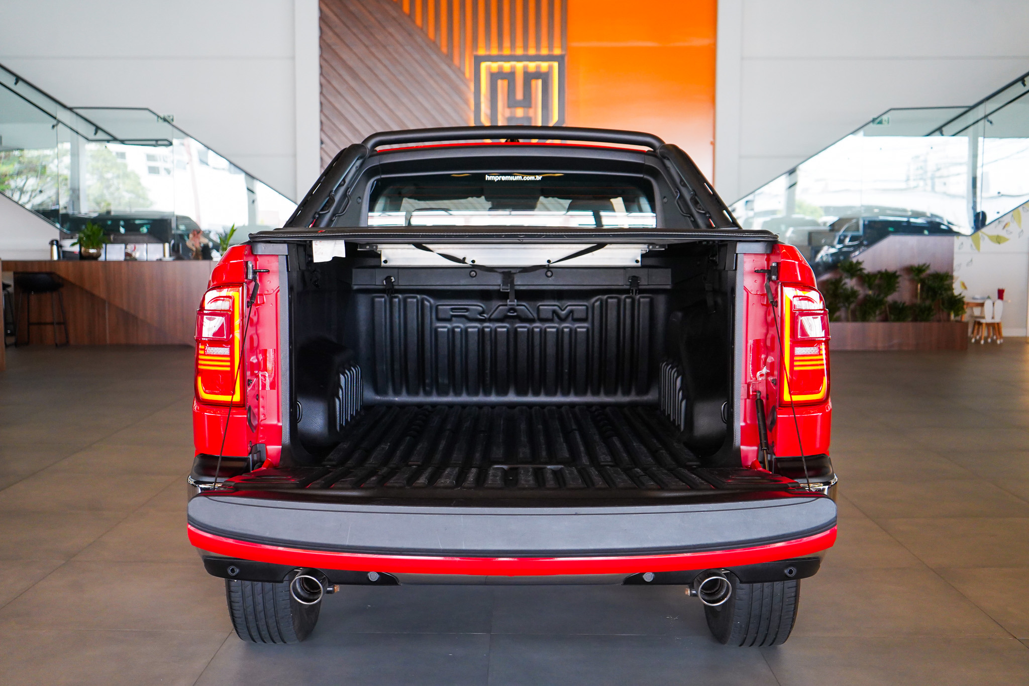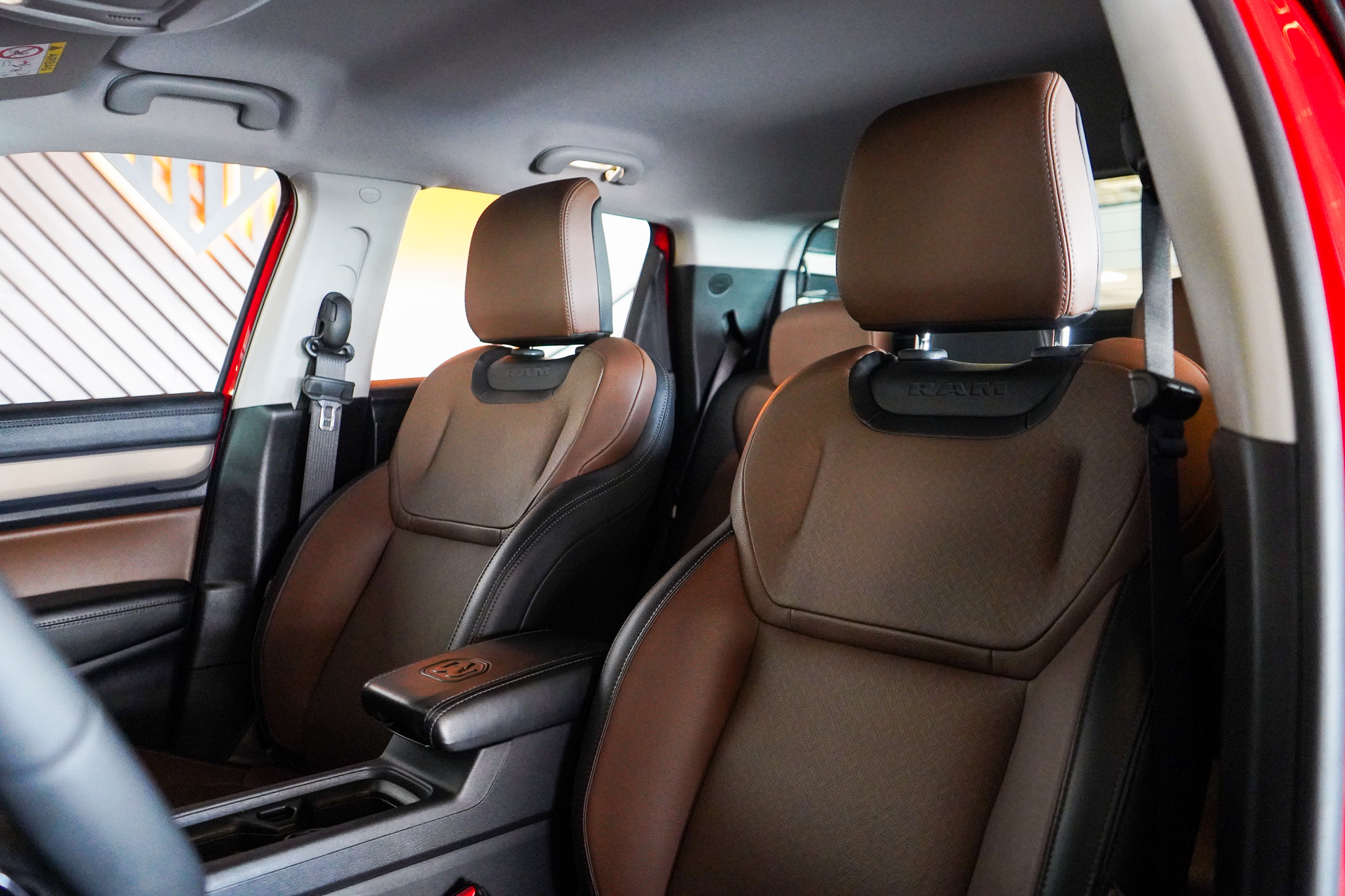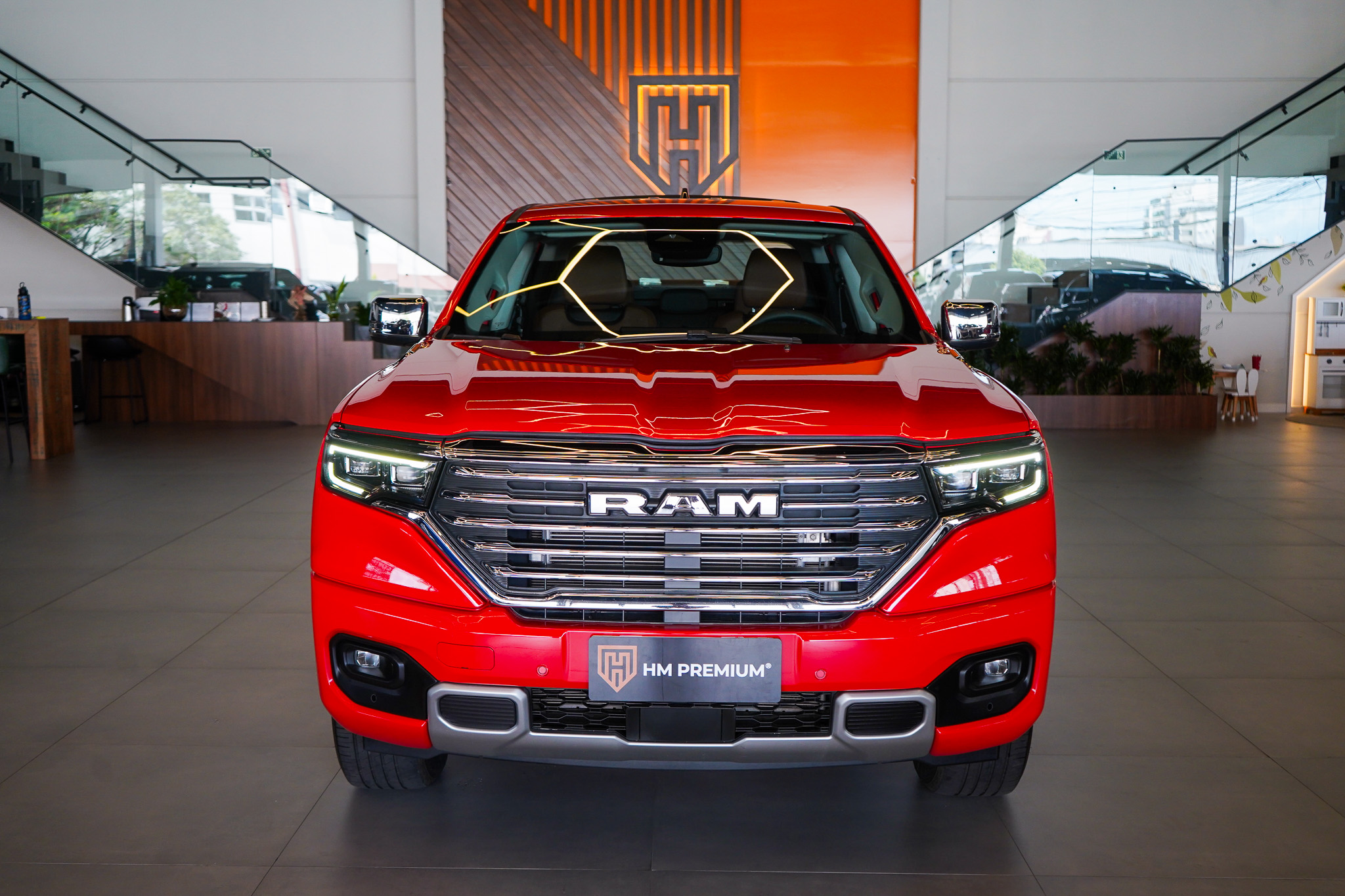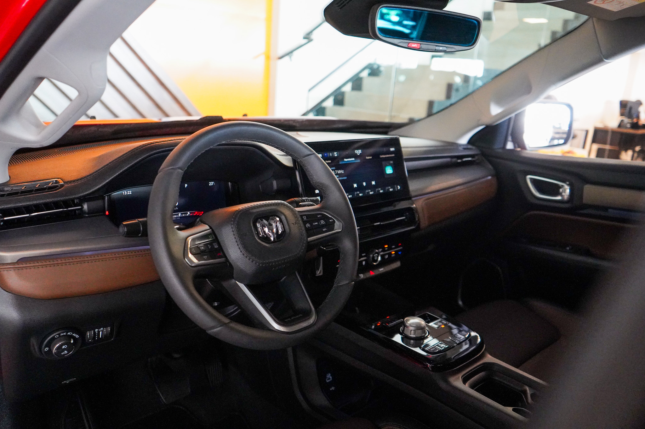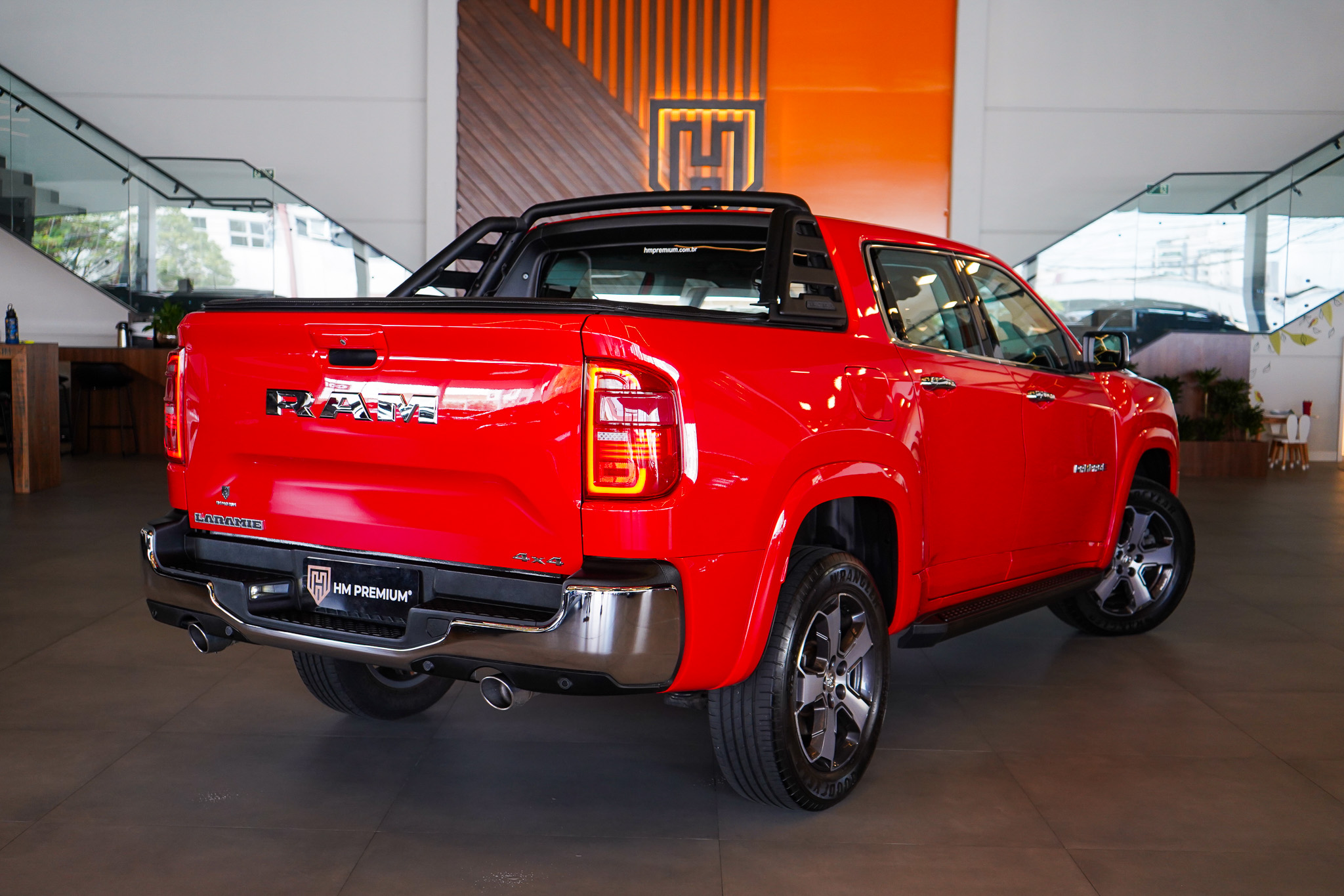 No conforto, destaca-se pelo padrão refinado da versão Laramie, com ar-condicionado automático de duas zonas, bancos revestidos em couro, banco do motorista com ajuste elétrico, volante com ajuste de altura e profundidade, controle de cruzeiro adaptativo, freio de estacionamento eletromecânico, chave presencial, acionamento remoto do motor, auto hold, retrovisores elétricos rebatíveis e acabamento interno sofisticado.