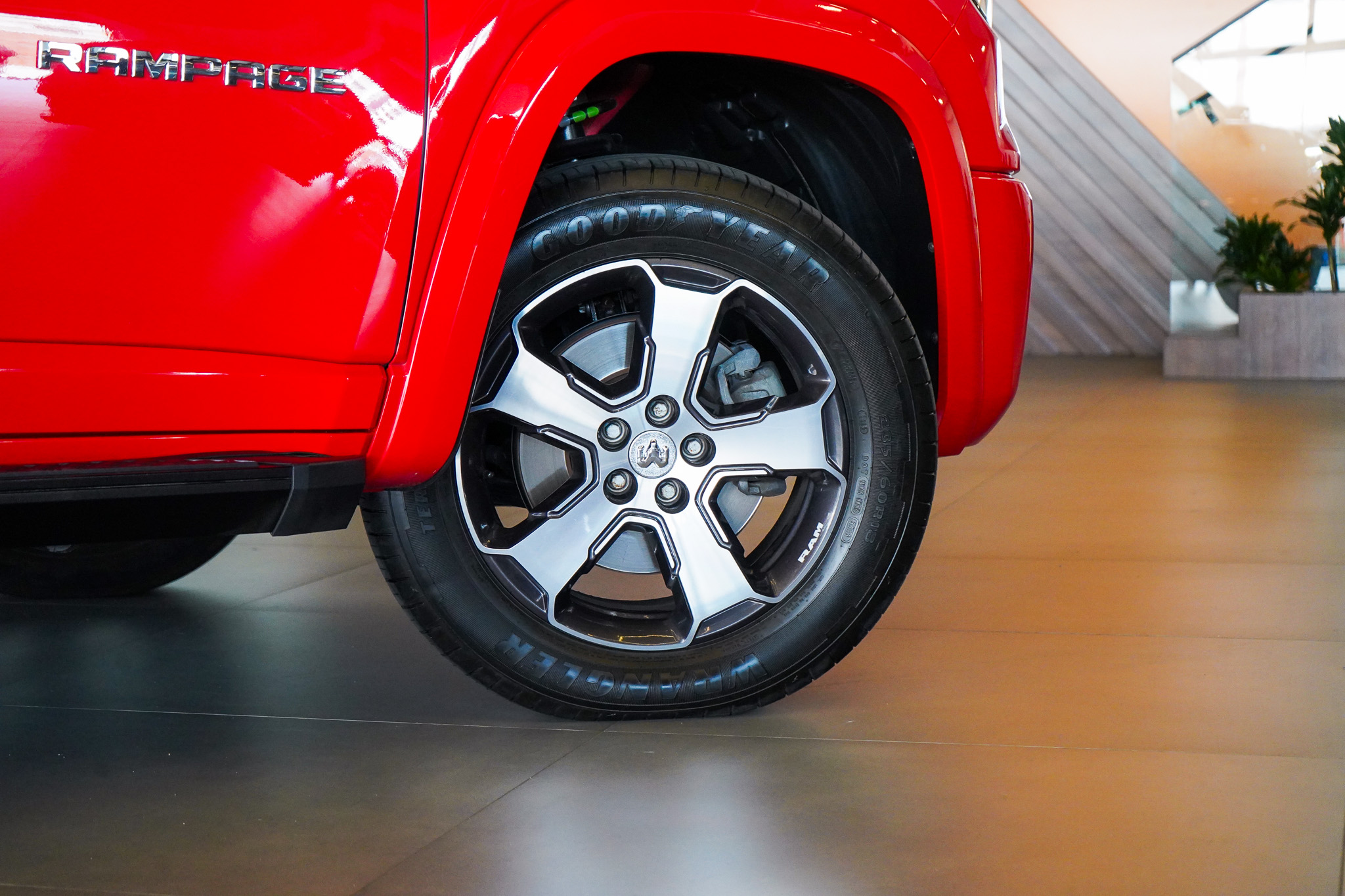 Em dimensões, a Rampage mede 5.028 mm de comprimento, 1.886 mm de largura, 1.780 mm de altura e entre-eixos de 2.994 mm. A caçamba oferece 980 litros de capacidade, com peso total de 1.915 kg. A altura mínima do solo é de 264 mm, com ângulo de entrada de 25,7°, ângulo central de 23,9°, ângulo de saída de 25,3° e capacidade de travessia de água de 500 mm, reforçando sua versatilidade fora do asfalto.