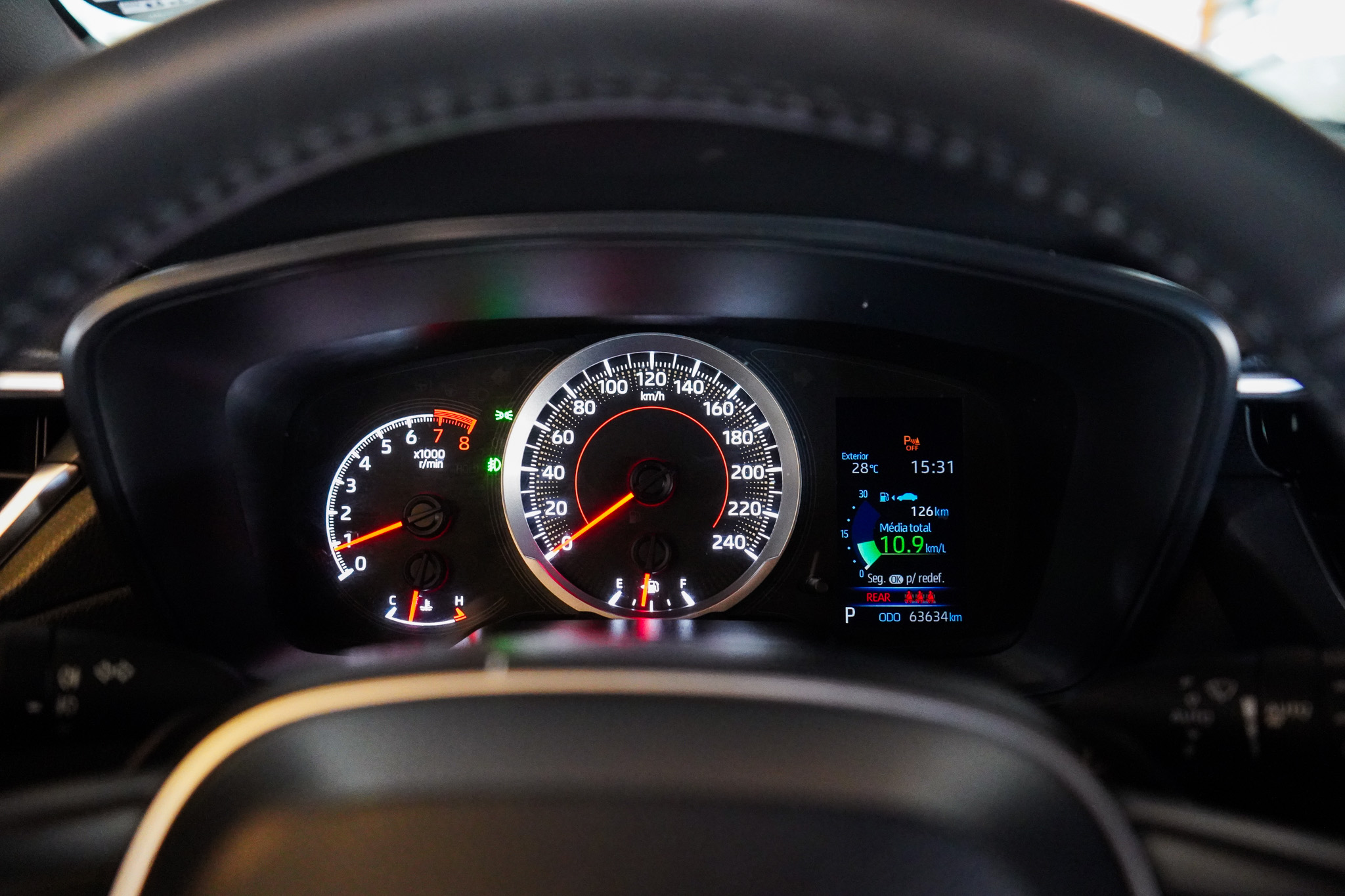 No consumo, apresenta médias de 8 km/l (A) e 11,5 km/l (G) na cidade, e 9 km/l (A) e 12,8 km/l (G) na estrada, com tanque de 47 litros, proporcionando autonomia de até 602 km em uso rodoviário com gasolina. Um conjunto que equilibra desempenho e racionalidade no dia a dia.