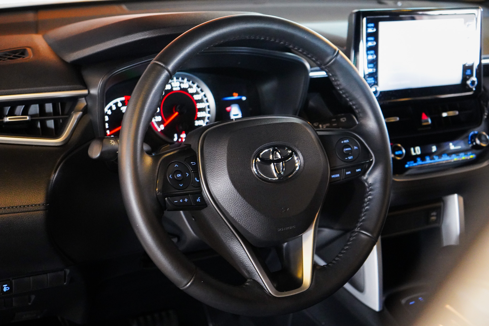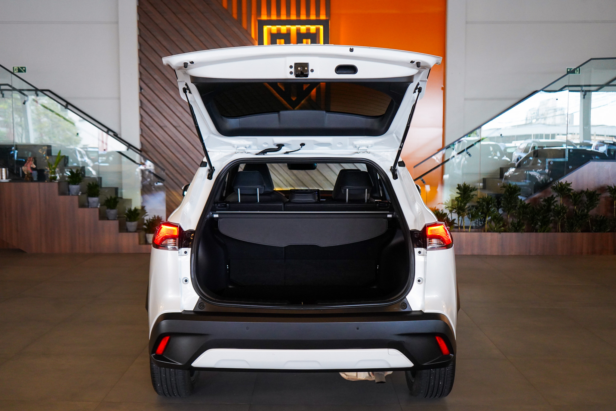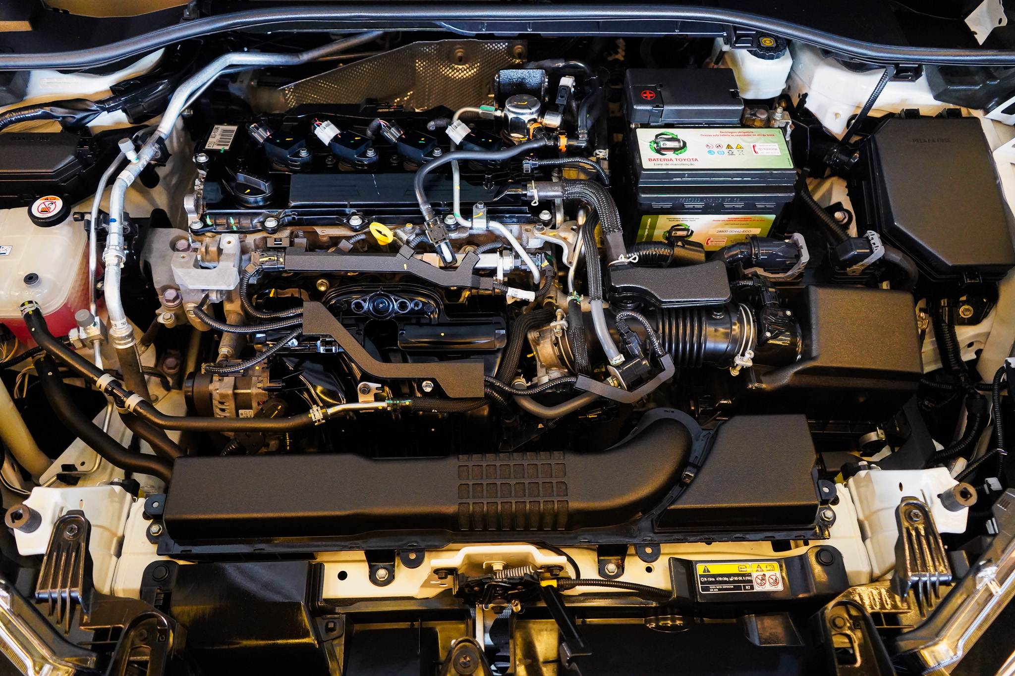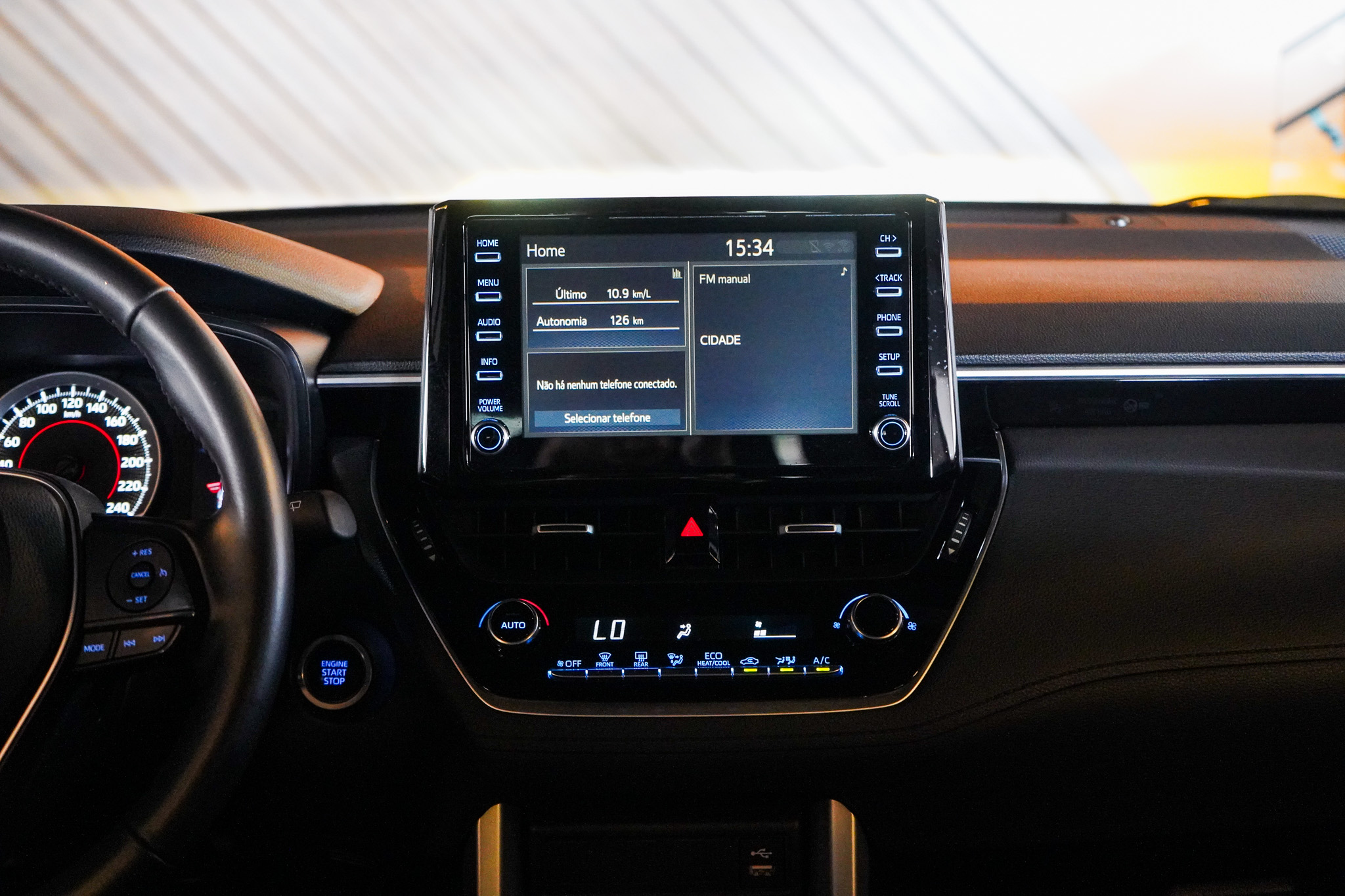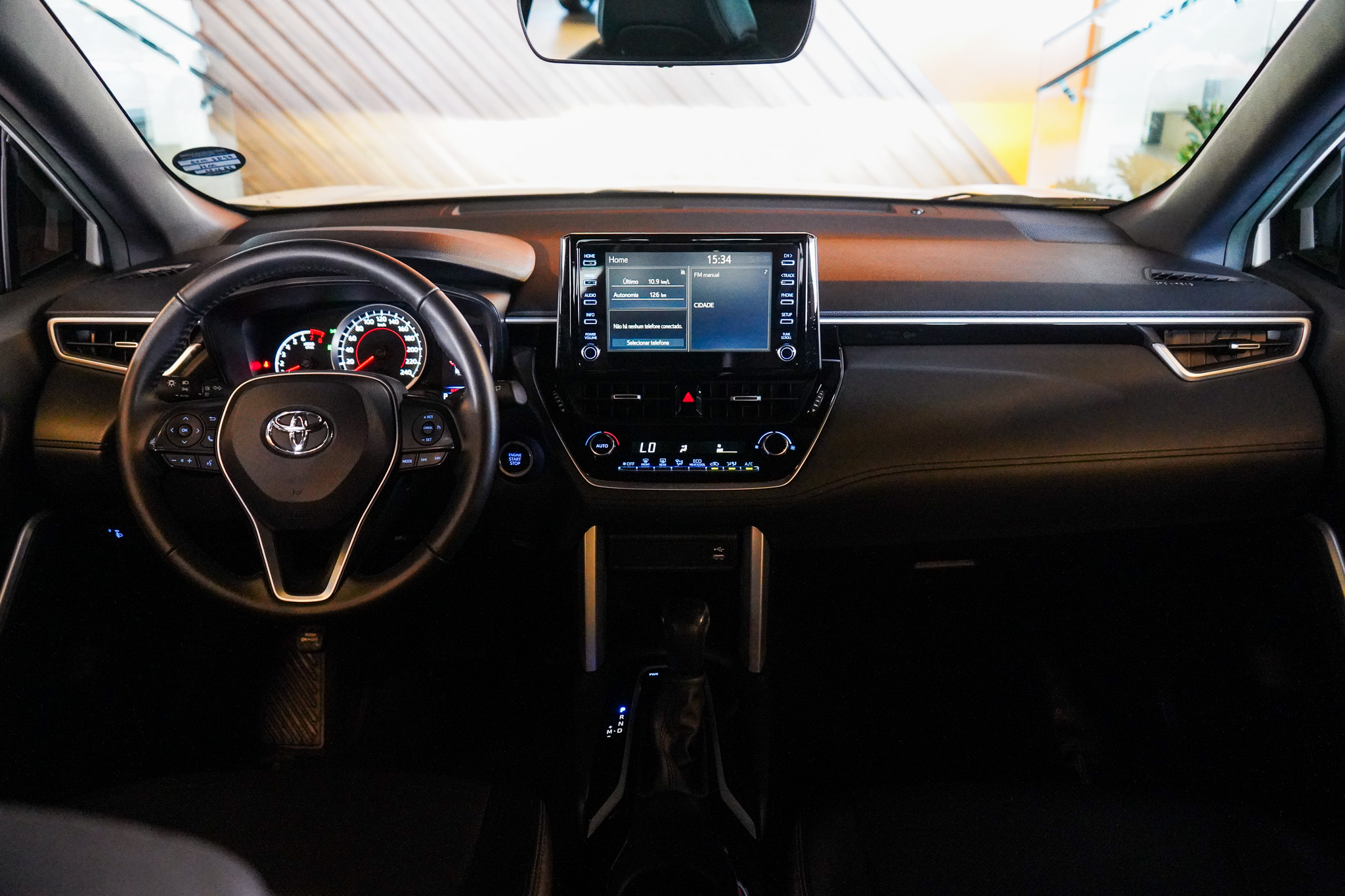 Em conforto e tecnologia, oferece ar-condicionado com controle automático de temperatura, direção elétrica, chave presencial, bancos revestidos em couro, ajuste elétrico dos retrovisores, ajuste de volante em altura e profundidade, piloto automático, computador de bordo, volante multifuncional, conexão Bluetooth e USB e espelhamento da tela do celular.