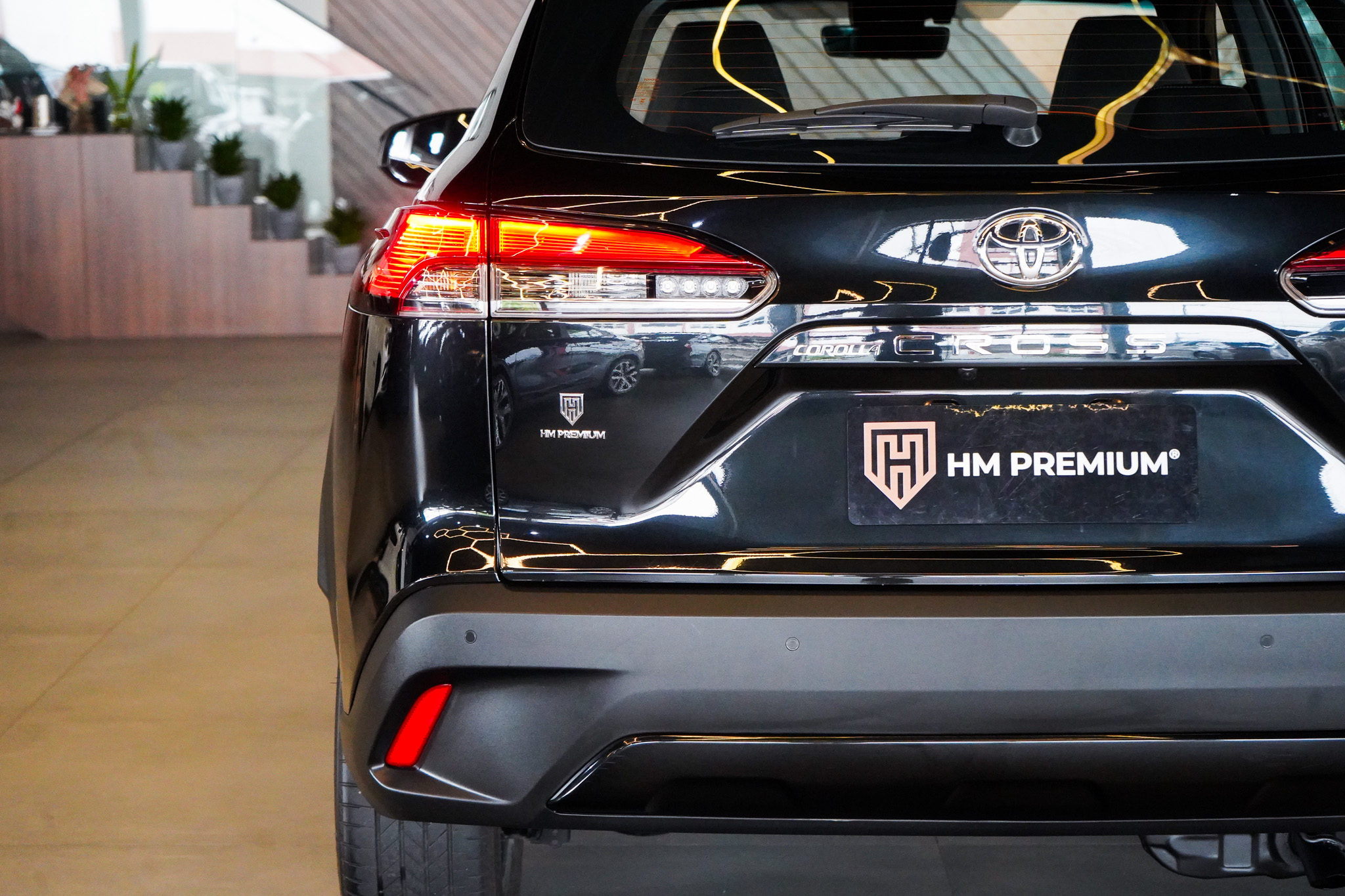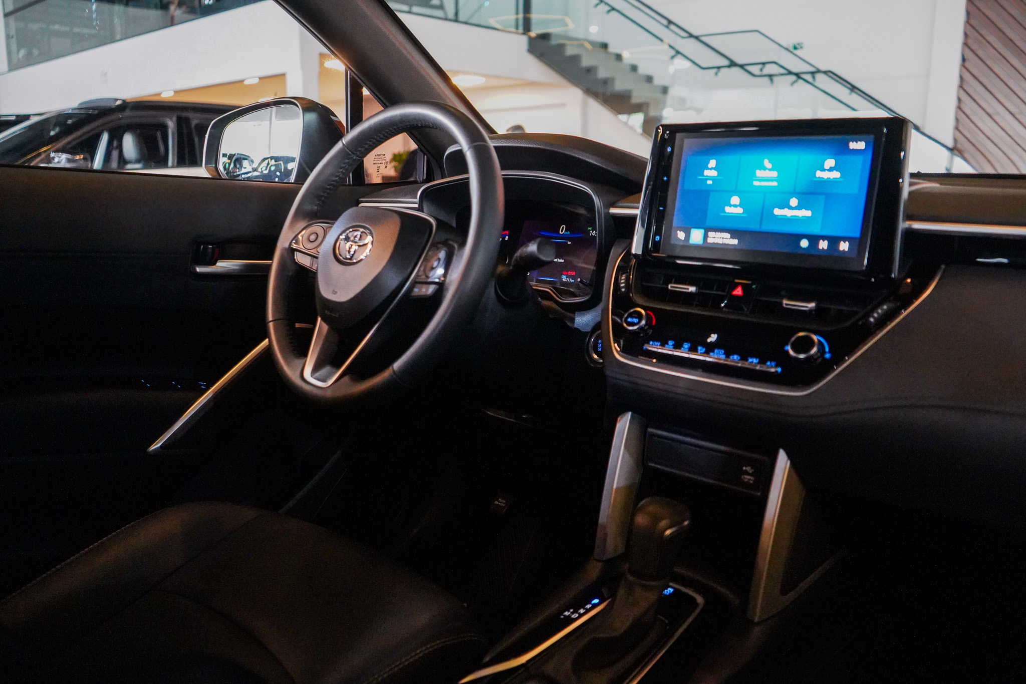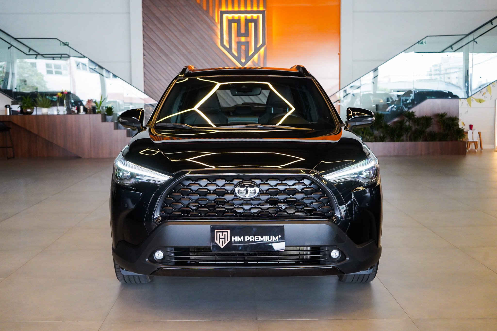Em segurança, o Corolla Cross XRE se destaca por 7 airbags, freios ABS, controles de estabilidade e tração, alerta de colisão frontal, assistente de permanência em faixa, assistente de farol alto, frenagem automática de emergência, sensores de estacionamento dianteiros e traseiros, câmera de ré, ISOFIX, assistente de partida em rampa e faróis de LED.