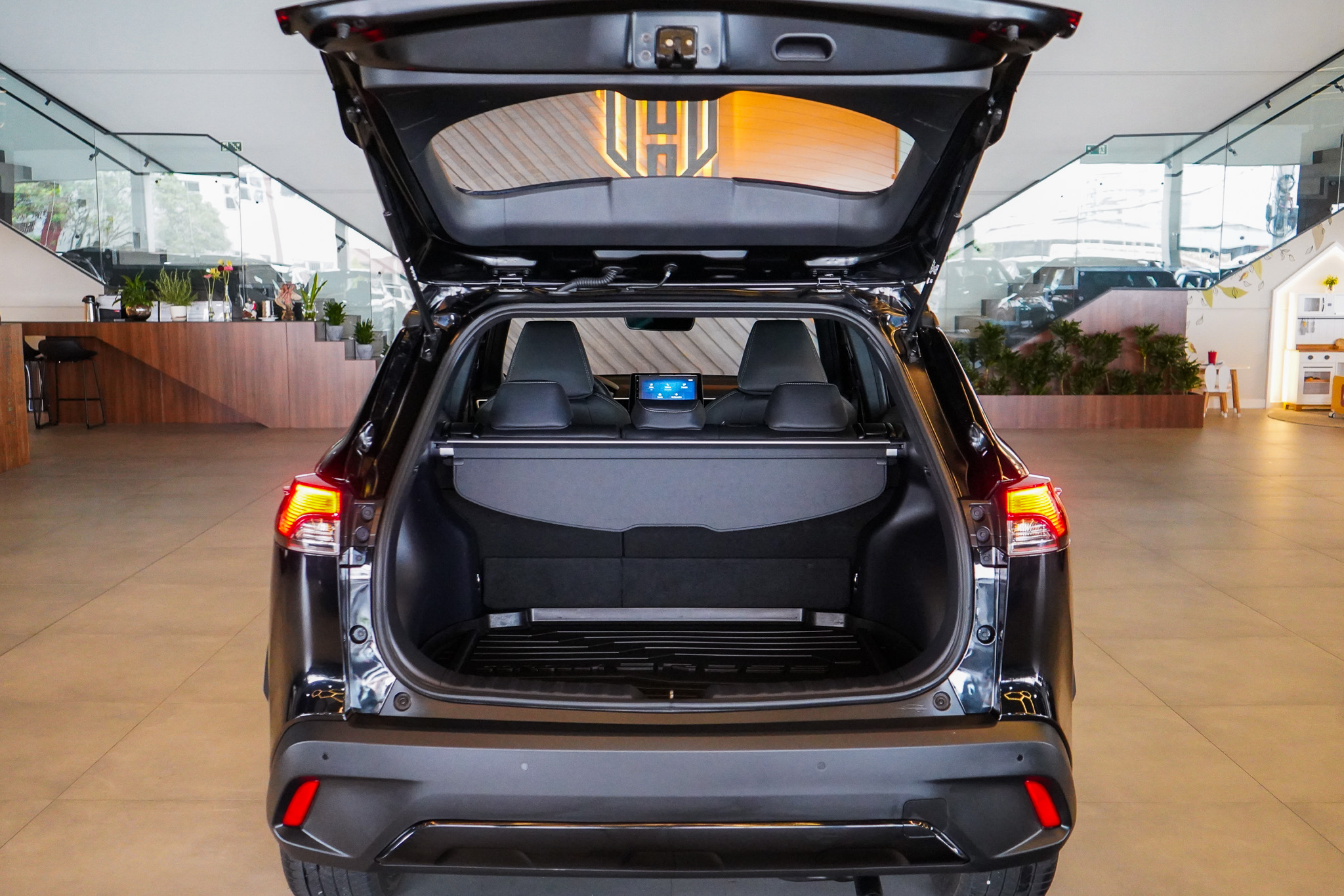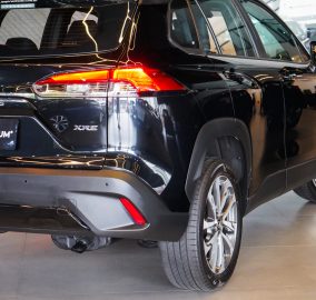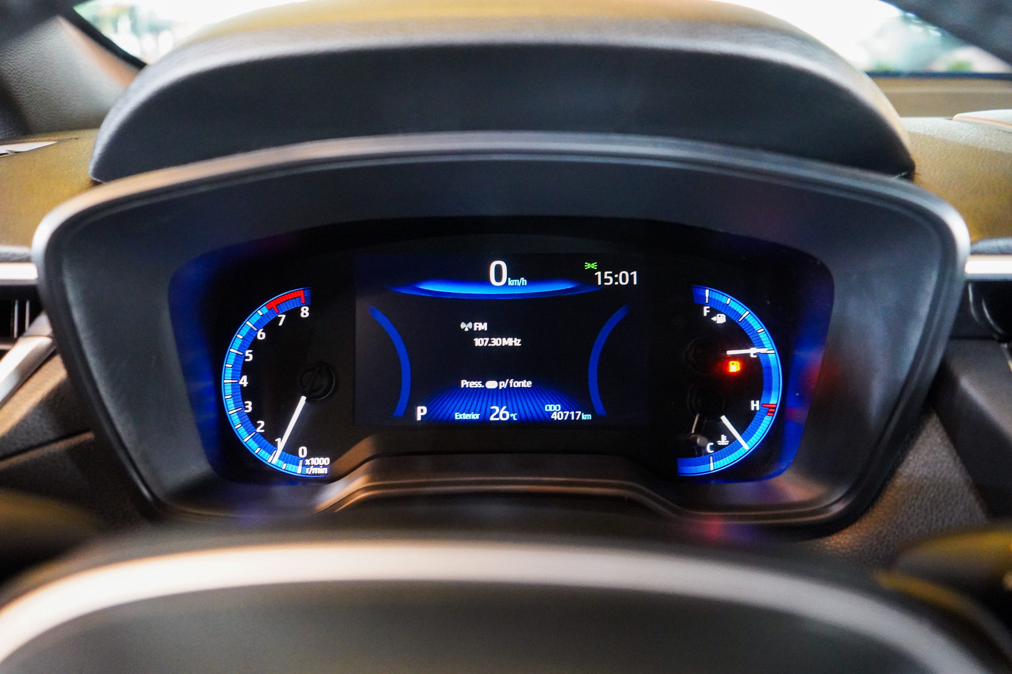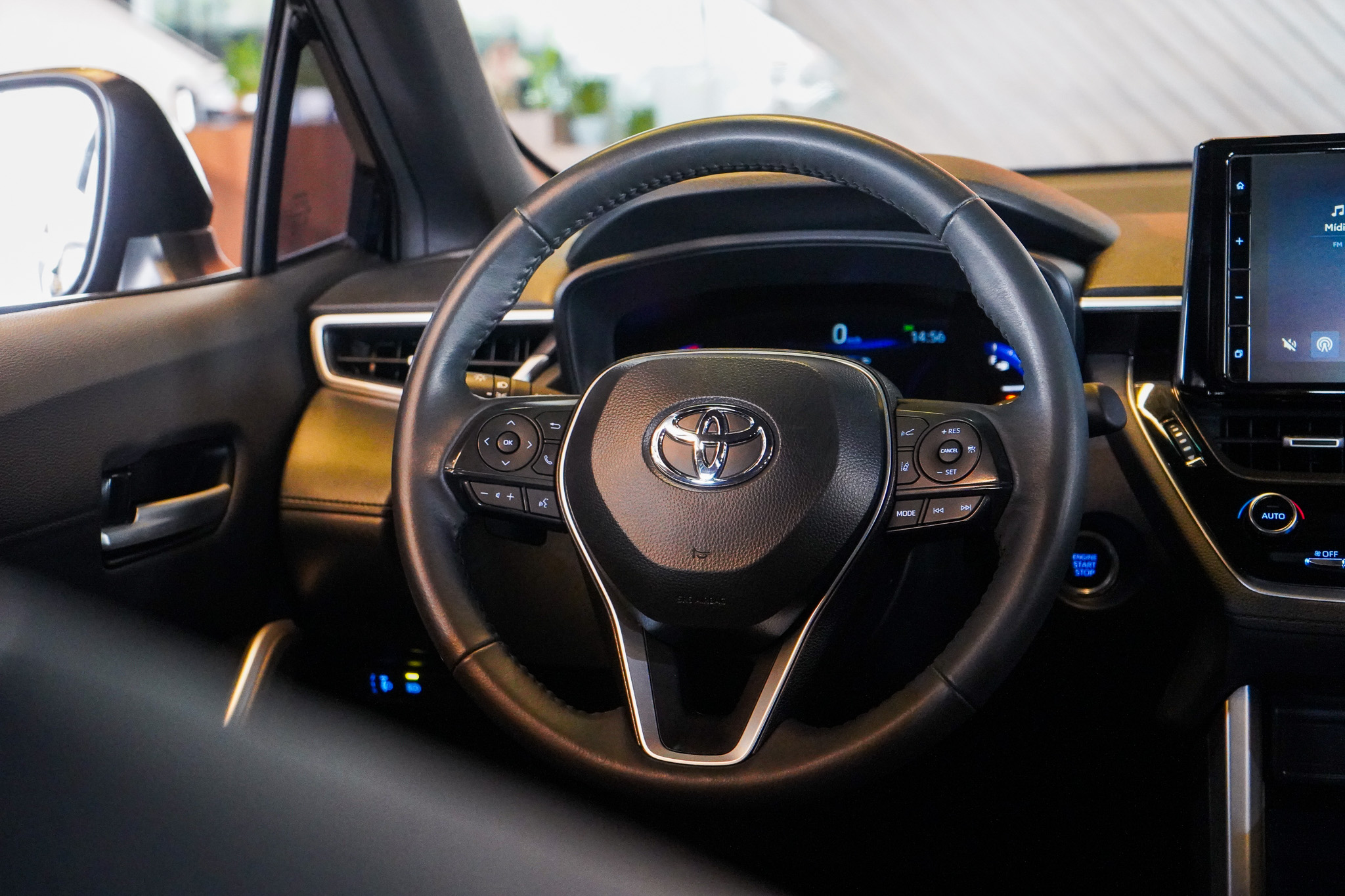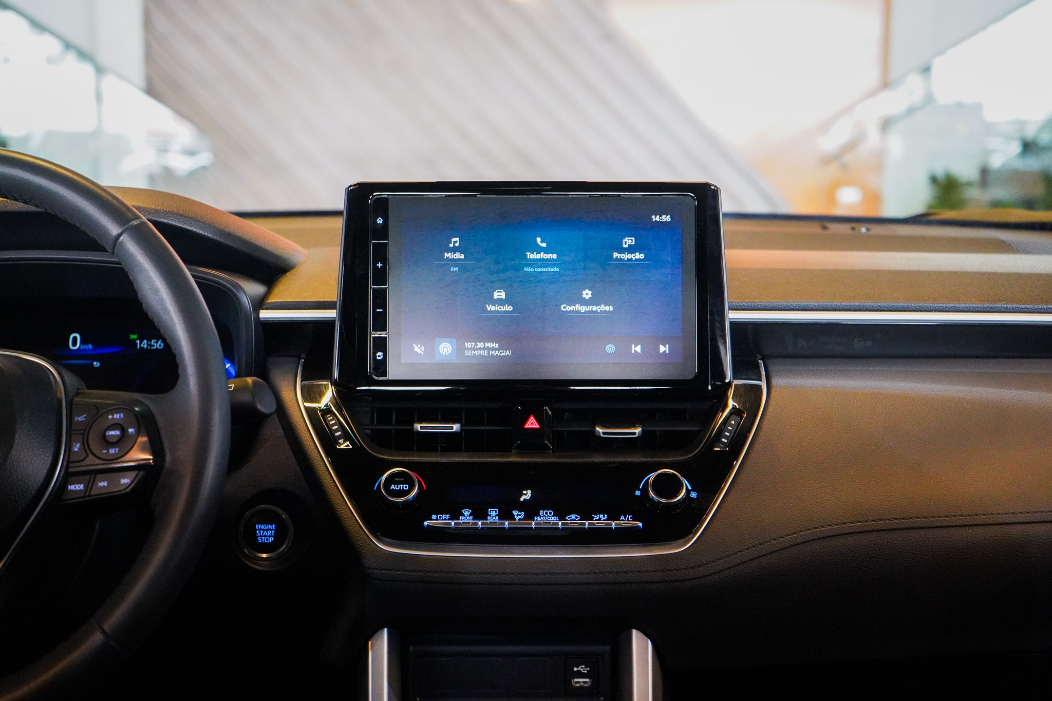 Em segurança, o Corolla Cross XRE se destaca por 7 airbags, freios ABS, controles de estabilidade e tração, alerta de colisão frontal, assistente de permanência em faixa, assistente de farol alto, frenagem automática de emergência, sensores de estacionamento dianteiros e traseiros, câmera de ré, ISOFIX, assistente de partida em rampa e faróis de LED.