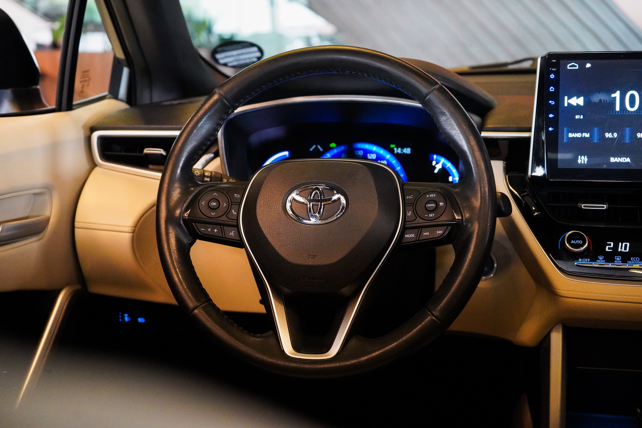 No conforto e tecnologia, oferece ar-condicionado digital dual zone, teto solar elétrico, bancos em couro com ajuste elétrico para o motorista, controle de velocidade adaptativo, chave presencial, start-stop, freio de estacionamento eletrônico, espelhamento da tela do celular, volante multifuncional, computador de bordo, conexão USB e recuperação de energia cinética, reforçando eficiência e sofisticação no uso diário.
