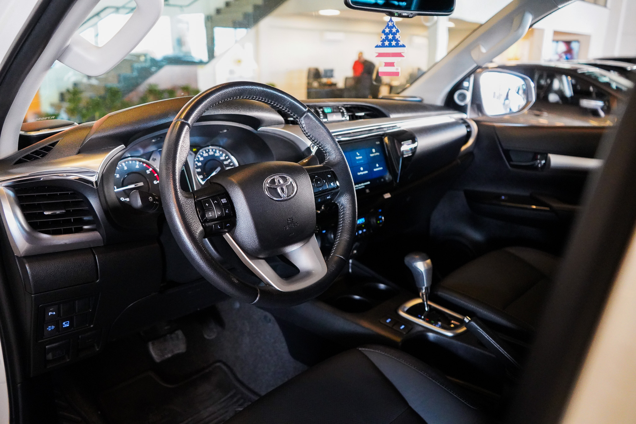 No campo da segurança, a Hilux SRX Plus apresenta um pacote extremamente completo, incluindo freios ABS, controle de estabilidade, controle de tração, assistente de partida em rampa, frenagem automática de emergência, alerta de colisão frontal e alerta de mudança de faixa. O conjunto de airbags contempla frontais, laterais e de cortina, além de ISOFIX para cadeiras infantis. Recursos adicionais como câmera 360°, sensores de estacionamento dianteiros e traseiros e controle automático de descida ampliam a segurança em manobras e em terrenos difíceis.