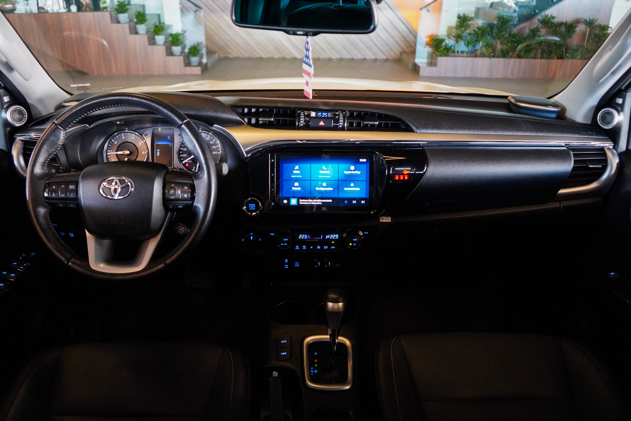 Em tecnologia e entretenimento, a picape incorpora sistema de navegação GPS, conectividade Bluetooth, espelhamento da tela do celular, computador de bordo, volante multifuncional, conexão USB, tomada 12V e sistema de som premium JBL com subwoofer, elevando a experiência sonora e tecnológica a bordo.