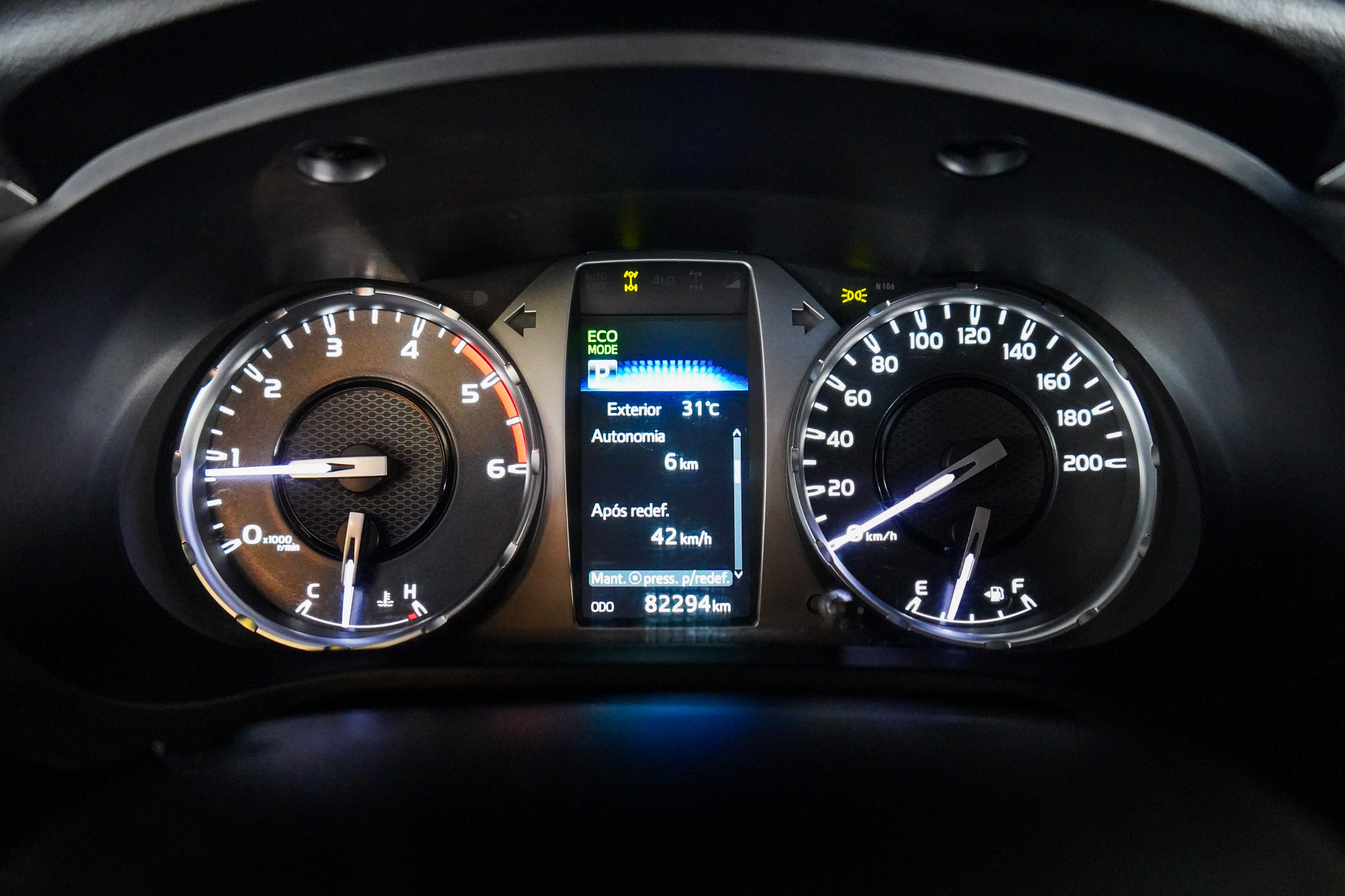 No consumo, a Hilux apresenta 9 km/l no ciclo urbano e 10,5 km/l no rodoviário, com tanque de combustível de 80 litros, garantindo autonomia aproximada de 720 km na cidade e 840 km na estrada, favorecendo longas jornadas com menos paradas.