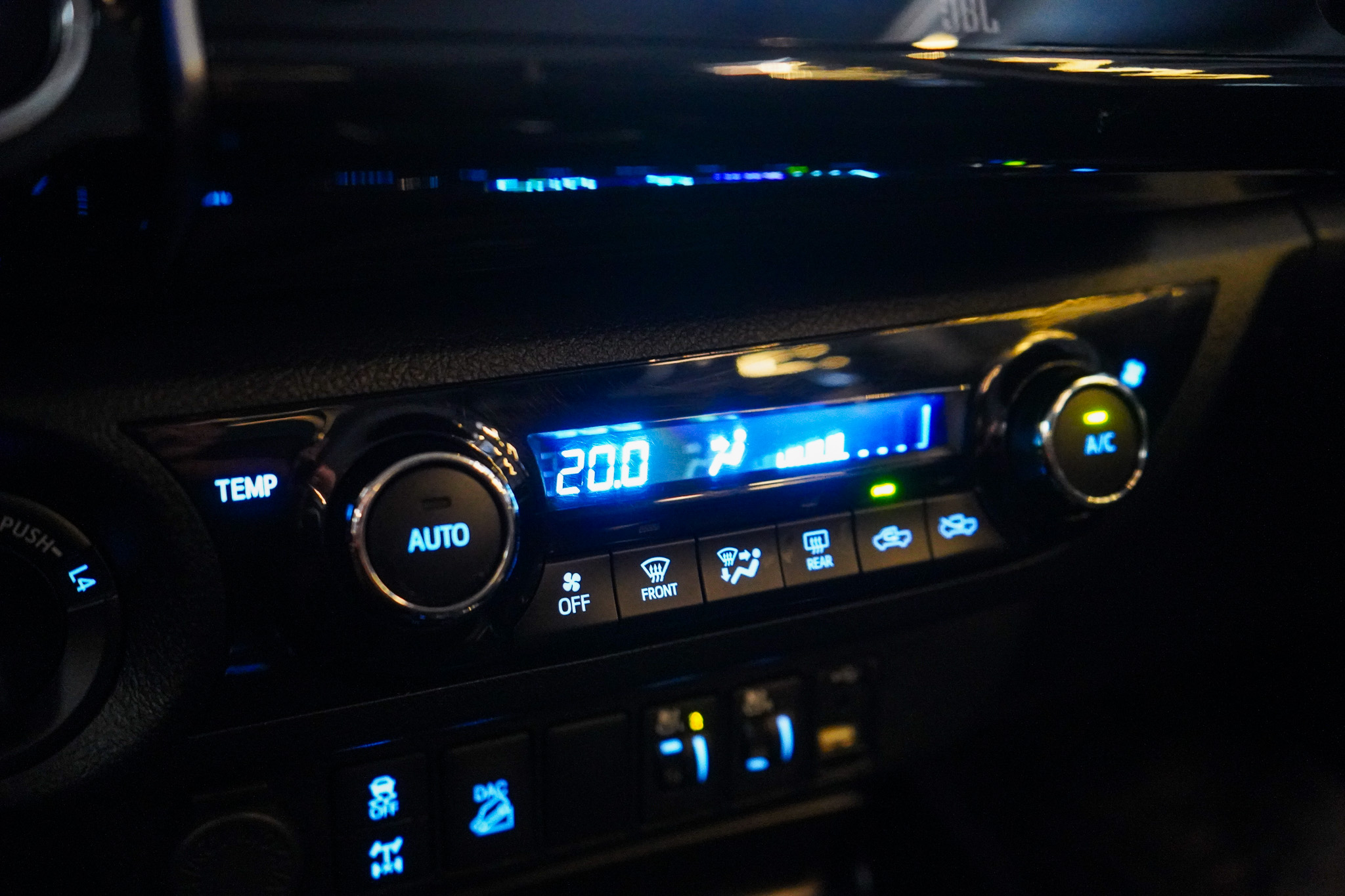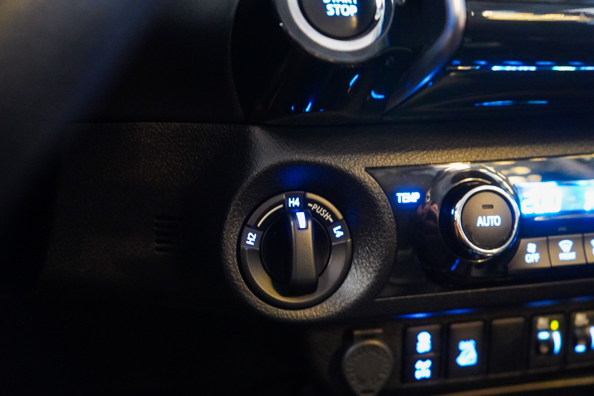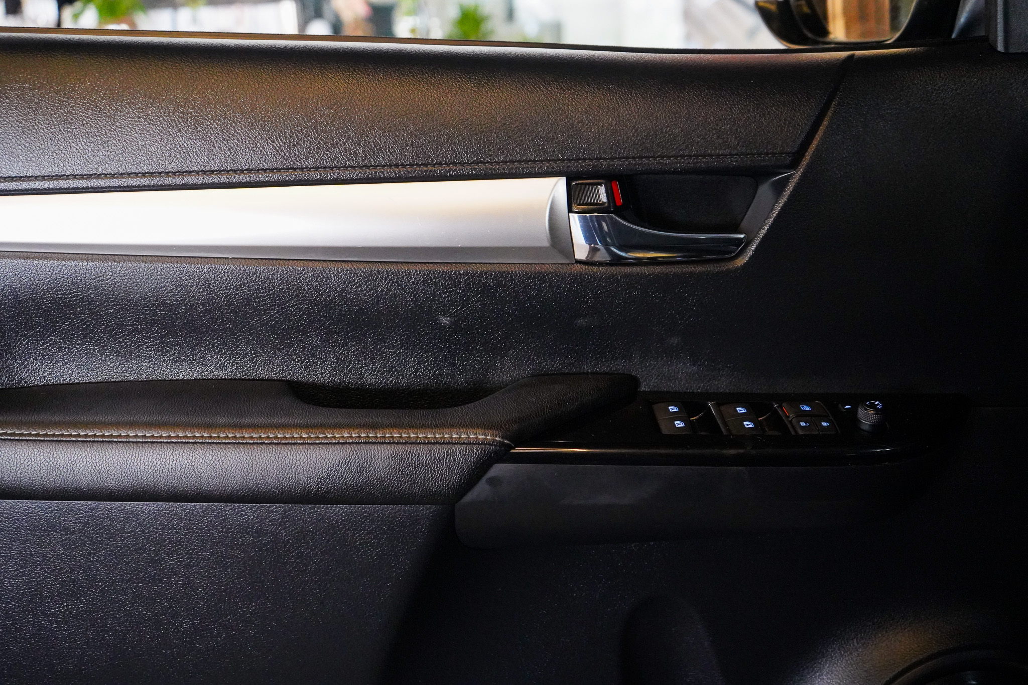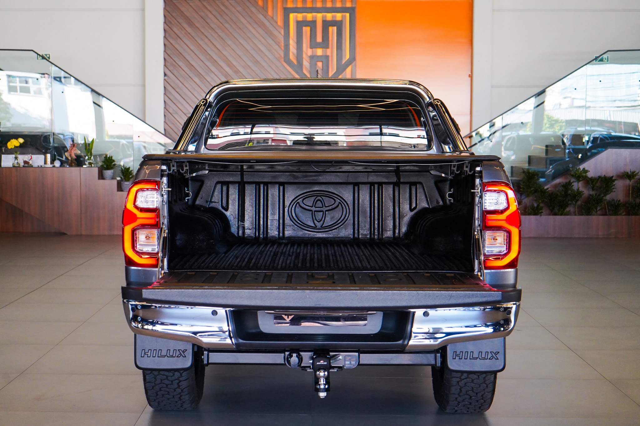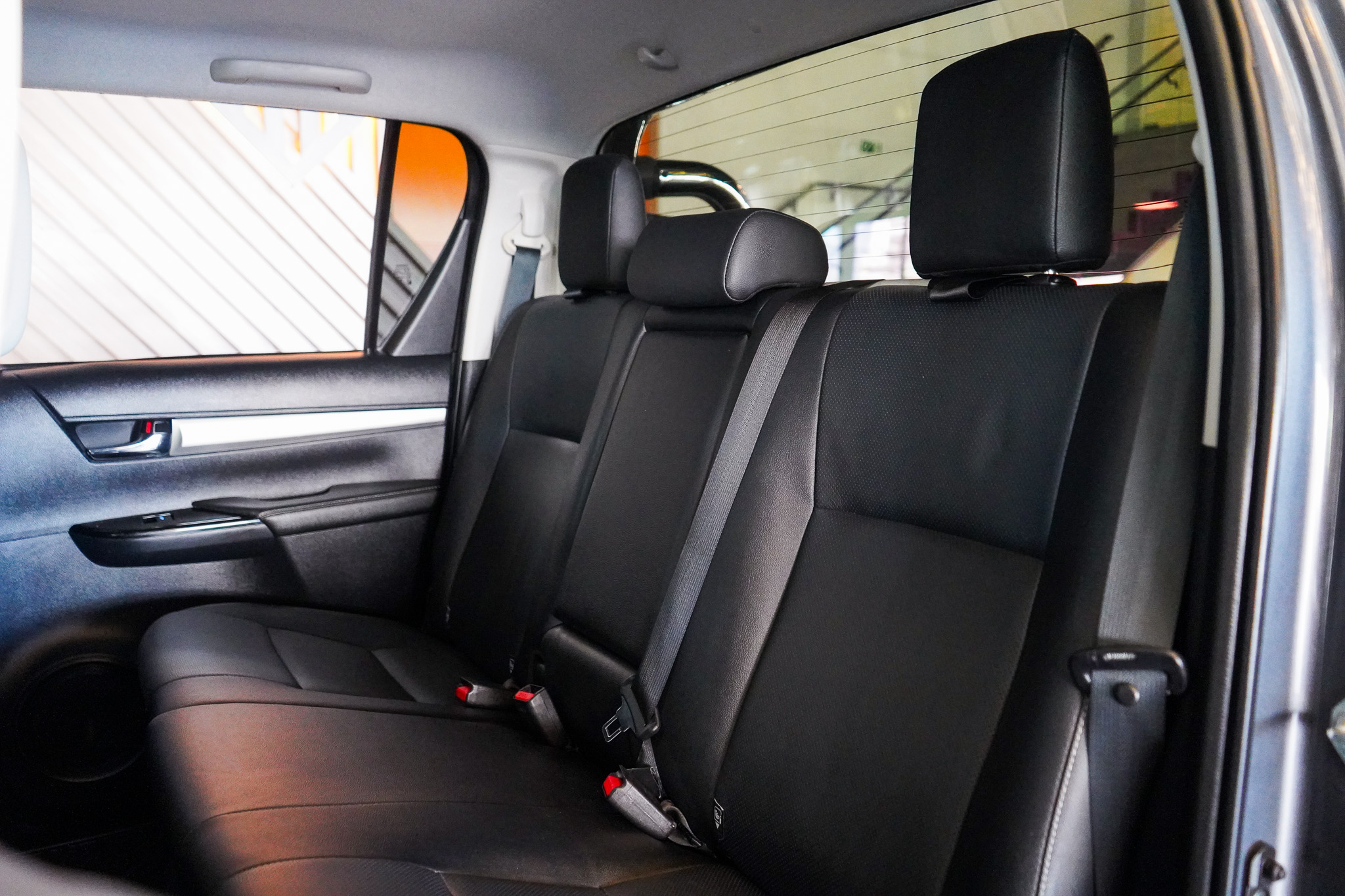Em conforto e conveniência, a Hilux SRX oferece ar-condicionado automático, bancos revestidos em couro com ajustes elétricos e ventilação, controle automático de velocidade adaptativo, chave presencial, vidros elétricos nas quatro portas, retrovisores com ajuste elétrico e rebatimento, rodas de liga leve e console climatizado, além de banco traseiro rebatível e diversos recursos voltados ao uso diário.