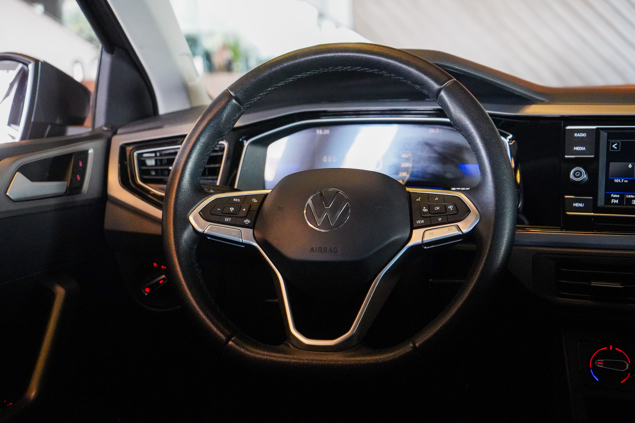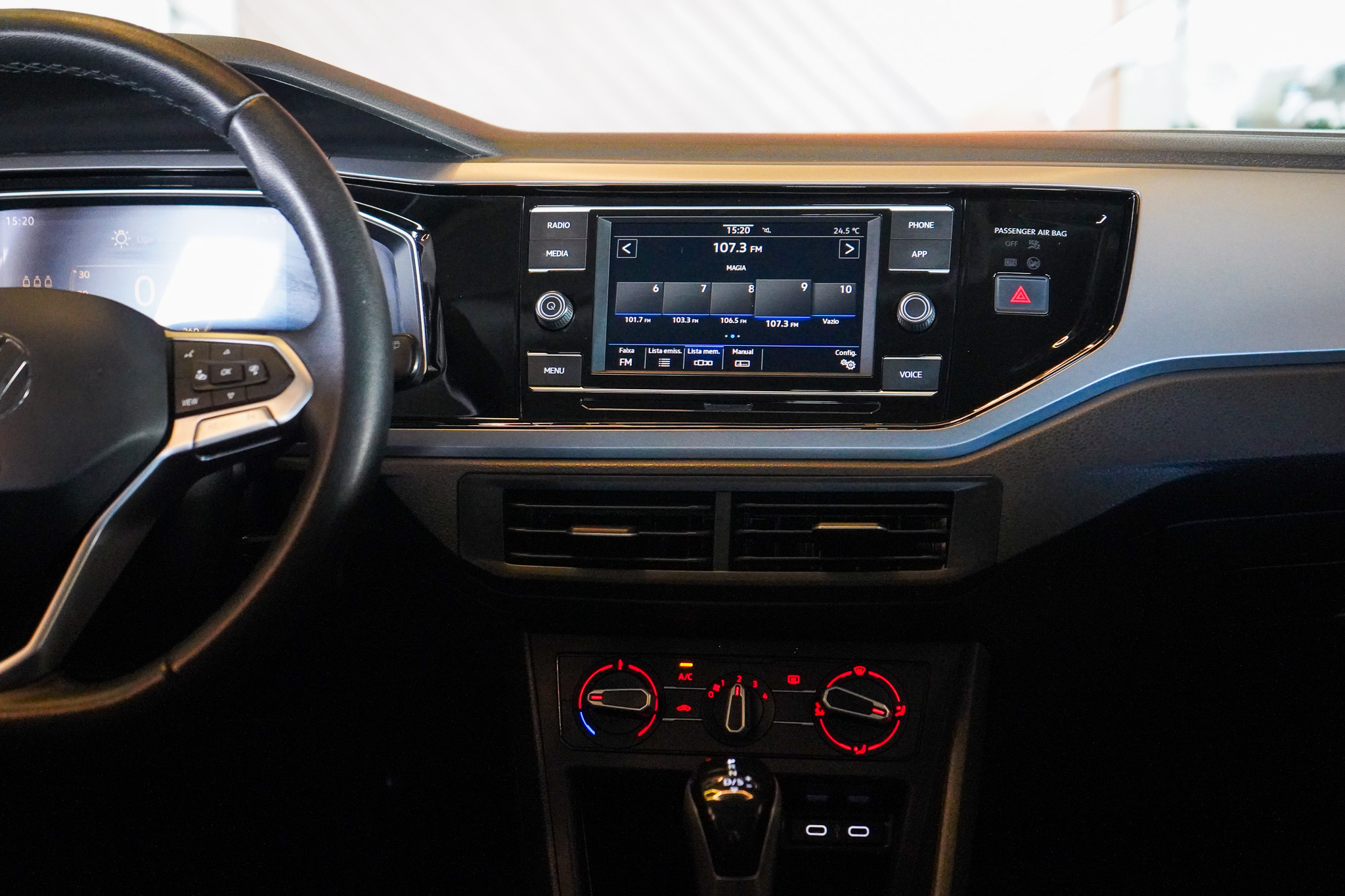 No infotainment, oferece rádio, Bluetooth, conexão USB, espelhamento da tela do celular, computador de bordo e carregador por indução (opcional), reforçando a conectividade no dia a dia.