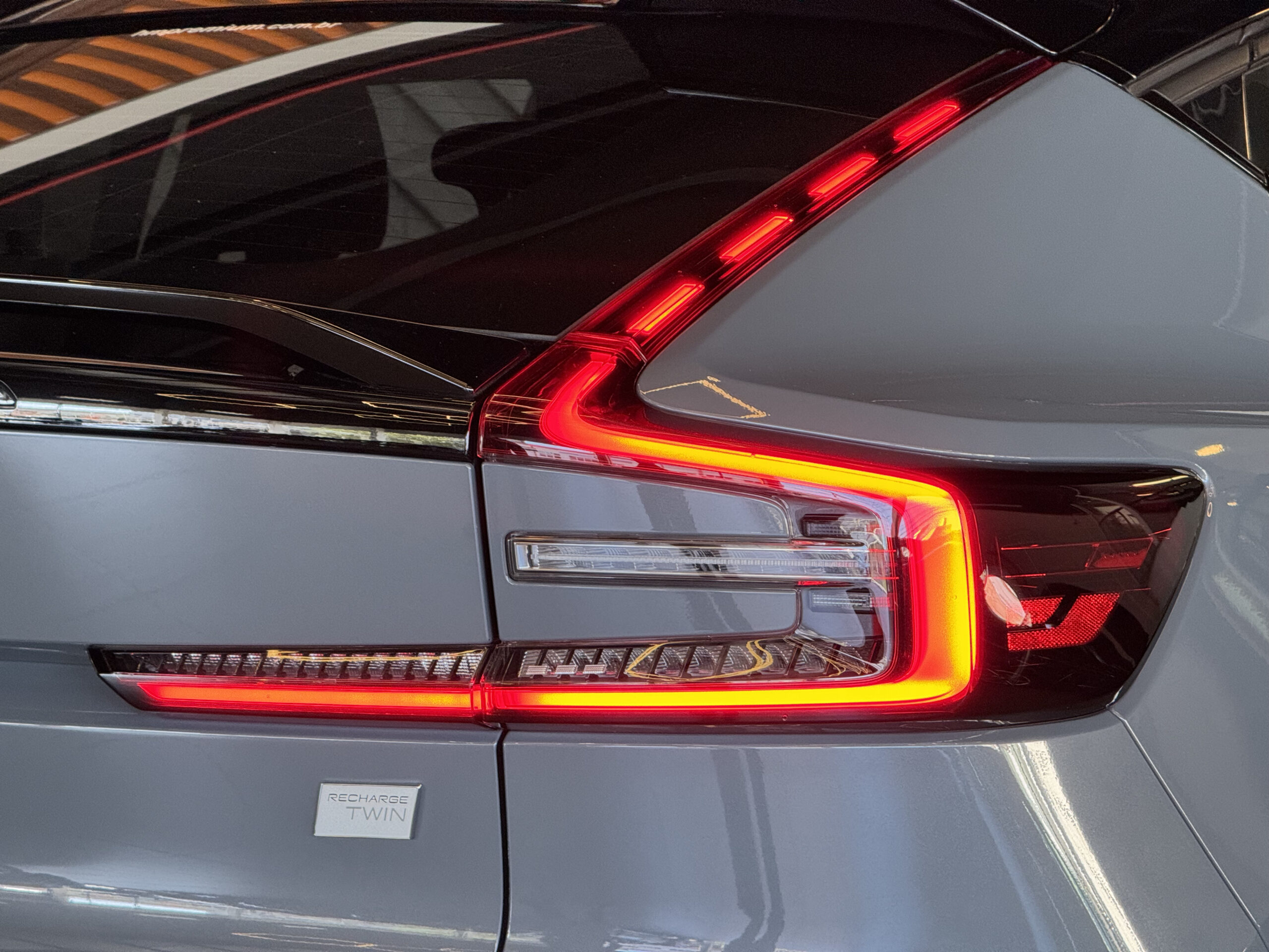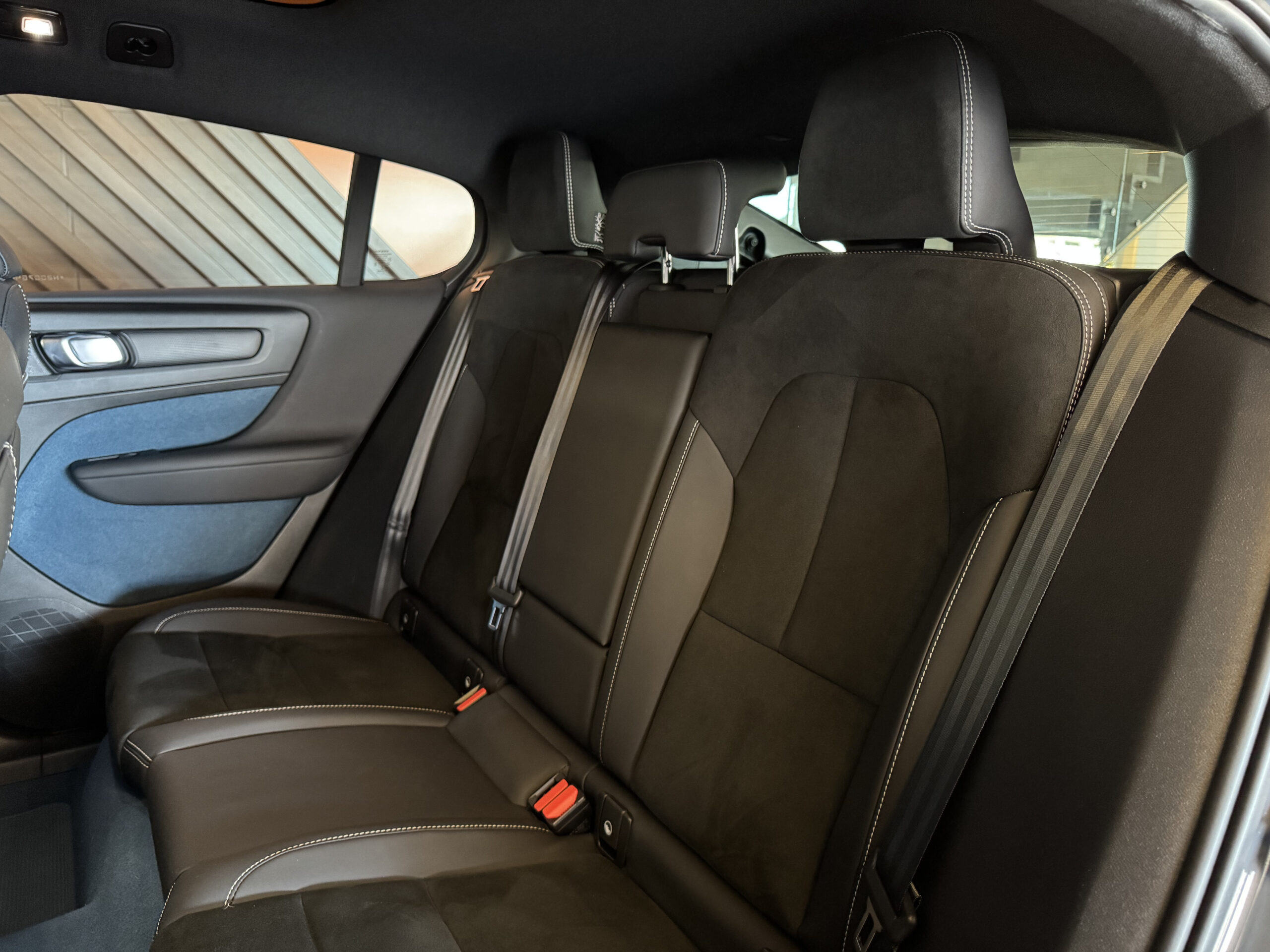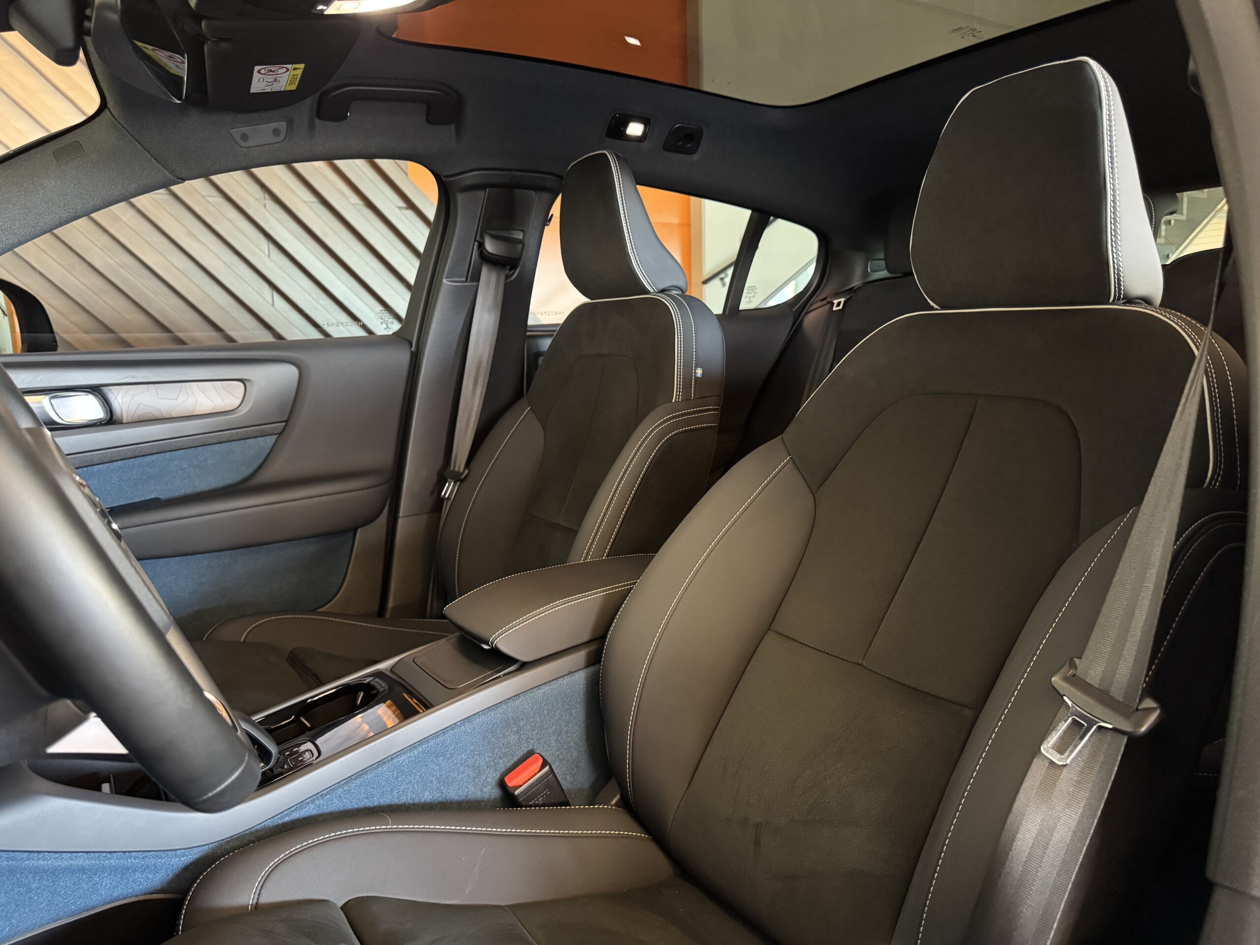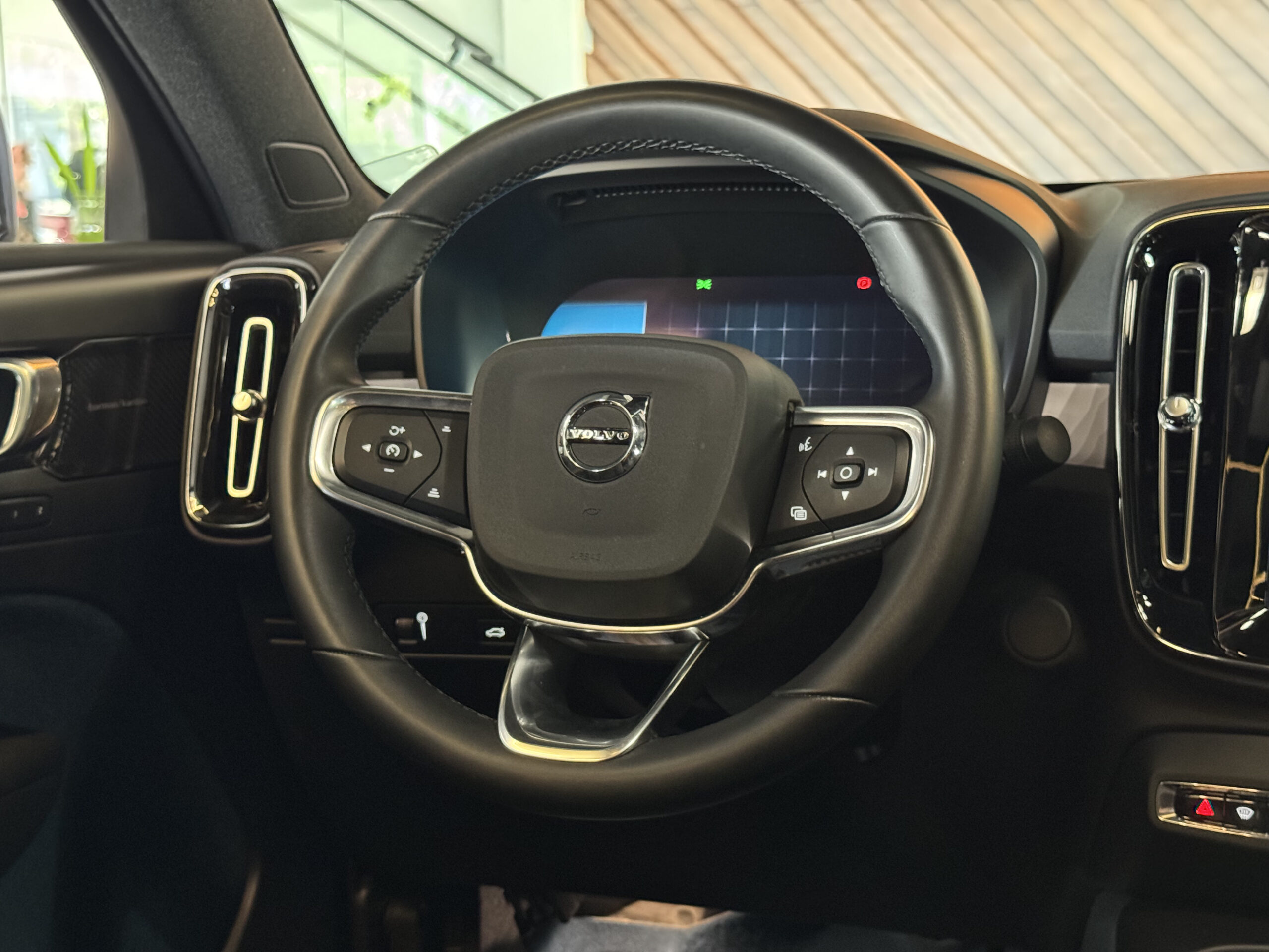 No conforto e sofisticação, o C40 Recharge oferece ar-condicionado digital automático de duas zonas, bancos revestidos em couro, banco do motorista com ajuste elétrico e memórias, banco do passageiro com ajuste elétrico, ajuste do volante em altura e profundidade, teto panorâmico, freio de estacionamento eletromecânico, Auto-Hold, porta-malas com tampa traseira motorizada, porta-objetos climatizado e chave presencial.